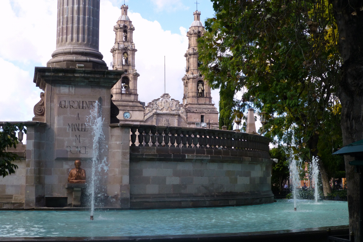 Huch, es ist bewölkt und die Hügel sind unter tief hängenden Wolken verborgen. Unser Tagesziel, der auf Sichtweite stehende ‚Christo Rey‘ sieht man nicht! Dies ist die zweitgrösste Christusstatue (nach Rio de Janeiro). Nehmen die zu bezahlende Strasse nach ‚Silao‘. Hätten dies besser lassen sollen. Finden uns plötzlich in Silao und fragen nach der Christus Statue. Fast die ganze Strecke auf der nicht zu bezahlenden Strasse retour. Hier sehen wir auch die blauen Signale und Richtungspfeile. Folgen diesen und plötzlich gibt es keine Signalisation mehr und wir sind schon wieder falsch und müssen nochmals wenden. Schlussendlich finden wir die äusserst schlechte und kurvige Auffahrt auf den Berg. ‚Christo Rey‘ - der topografische Mittelpunkt von Mexiko auf 2500 m.ü.M. Oben angekommen sehen wir nicht einmal die Christus-Figur hoch über uns. Sitzen im MAN und wissen nicht, ob wir weiterfahren sollen. Aus dem Lautsprecher ertönt ein stündiger Gottesdienst mit Gesang und Predigt. Doch nun hellt sich das Wetter ein wenig auf und wir können das Monument sehen. Es ist schon die 5. Statue seit dem Jahre 1920. Fahren weiter weil es erst 14 Uhr, kalt und windig ist. Quer durch die Stadt ‚Léon‘, eine moderne Industriestadt für Schuhe und Lederwaren. Besuchen einen riesigen Outlet mit vielen Geschäften und schauen uns die schönen, günstigen Schuhe an. Bigi aber kauft sich keine Schuhe oder Tasche, dafür ‚Nike‘ Fitness-Bekleidung für zu Hause. Auf dem Weg nach ‚Aguascalientes‘ fahren wir an grossen Autowerken Chevrolet und Nissan vorbei. Ein Sturm fegt Kaspar fast von der Strasse. Wir überlegen, ob wir nicht besser irgendwo parkieren sollten. Doch wir kommen gut in ‚Aguascalientes‘ an. Ein Gruss an den Zistig-Club: wir waren beim Italiener über die Strasse!