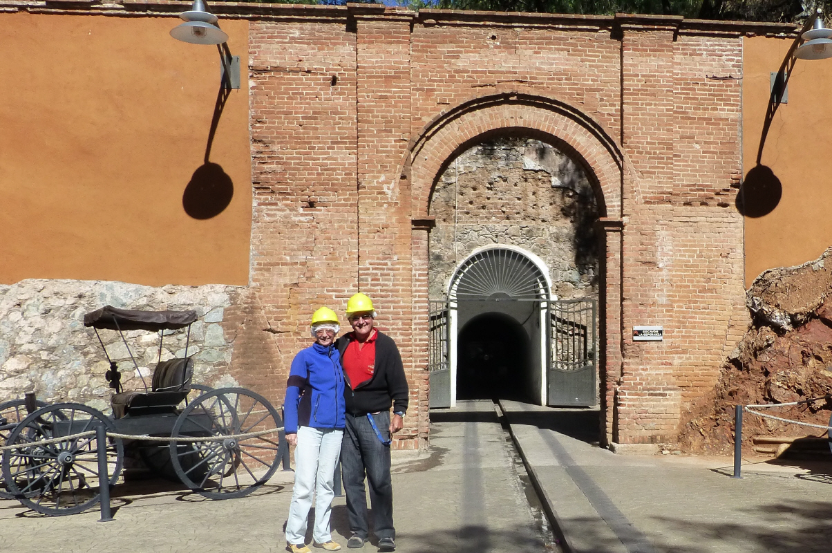 Diese kann man besichtigen. Zuerst mit einem Bähnchen 350 m in den Fels hinein, dann zu Fuss durch die schön beleuchteten Minenschächte. Man kann das Silber, Gold, Kupfer, Amatiste, Zitrin etc. deutlich sehen. Der Guide kratzt für unser Tagebuch noch einen wenig Gold und Silber ab, so ca. 0,00001 g! Die Mine hatte 5 Schächte, wovon nur noch der Dritte begehbar ist. Die Andern sind entweder verschüttet oder unter Wasser. Silber und Gold wurde seit 1548 gefördert. Unter welchen Bedingungen, das fragt man lieber nicht! Hier drinnen gibt es weltweit die einzige Discothek – geöffnet Freitag bis Sonntag, jedoch nur Bum-Bum-Musik für Junge. Sind mit unserem Führer sehr zufrieden und überlassen ihm ein gutes Trinkgeld. Die Kathedrale ist geschlossen, so sehen wir uns auf dem Hauptplatz die Schlittschuhläufer an.