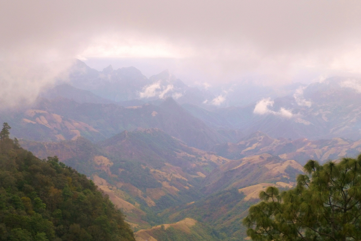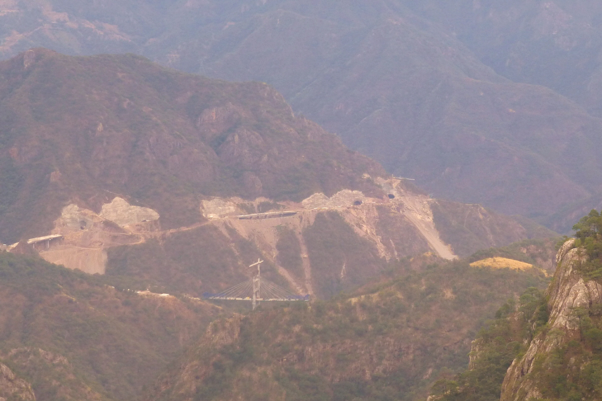 Die Nacht war erstaunlicherweise einigermassen ruhig. Verlassen früh den Übernachtungsplatz. Bis ‚El Salto‘ auf der neuen Strasse und dann die ‚Libre‘ Richtung Pazifik. Die Kilometerangabe können wir nicht richtig deuten: 220 km und ein Kilometer später 142 km. Was soll das? Dichter Nebel kommt auf und die kurvige Fahrerei wird echt anstrengend, ganz sturm im Kopf. Endlich kommen wir unter die Wolken/Nebeldecke. Die Aussicht über die Berge und äusserst tiefen Schluchten ist überwältigend.