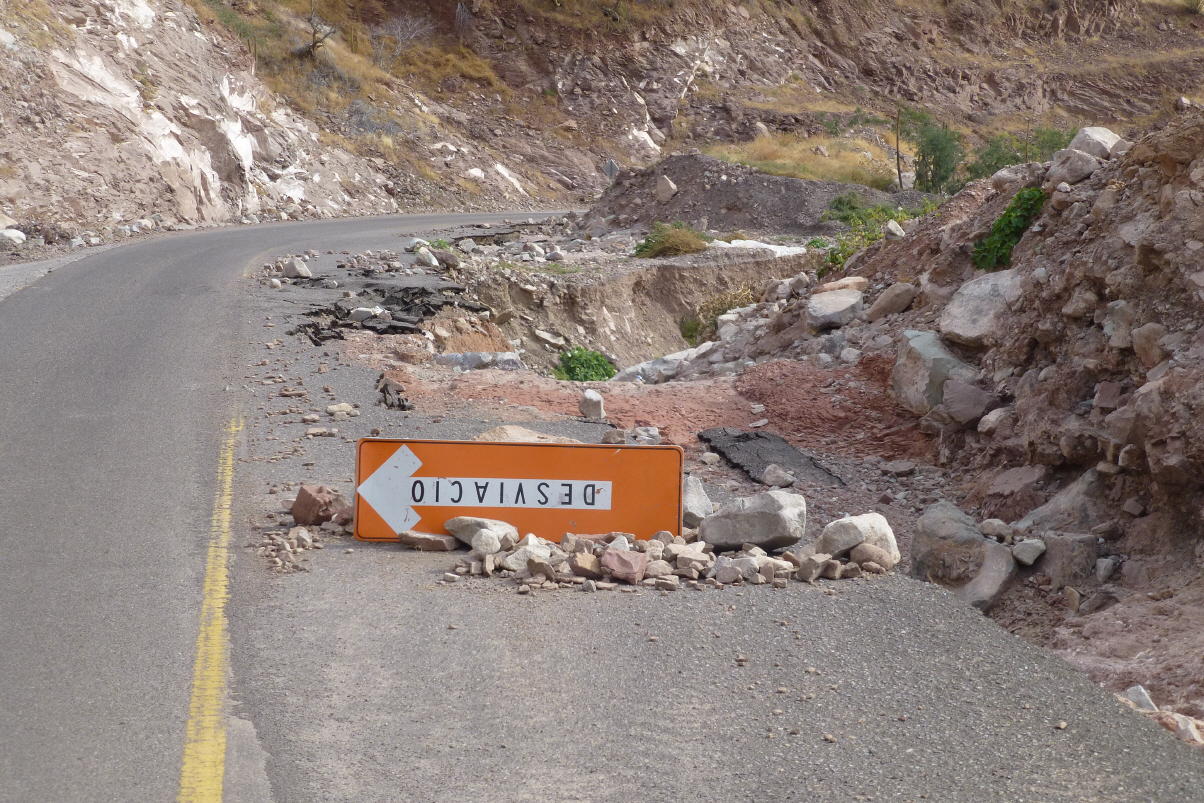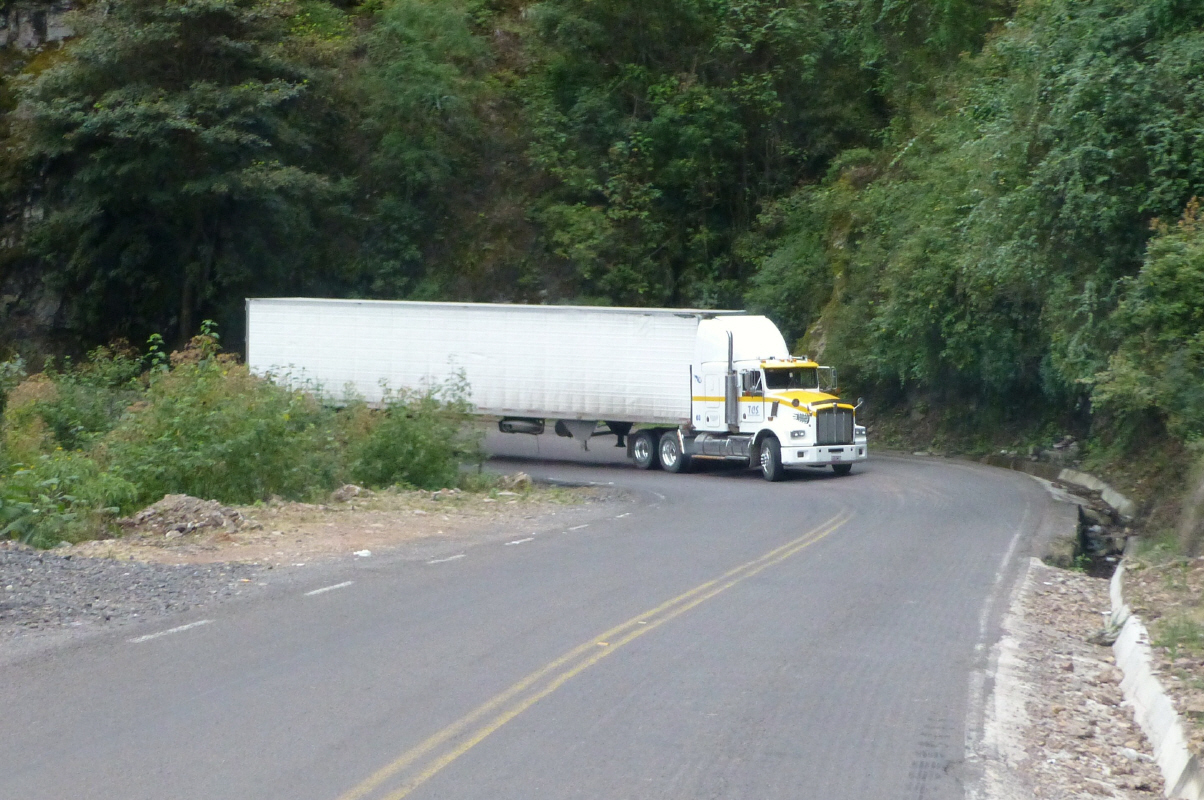 Die Strasse schlängelt sich der Bergflanke entlang. Wir passieren nur wenige Dörfer. Auch muss man sehr aufpassen, wenn uns ein langer Sattelschlepper begegnet. Vor allem die Rechtskurven sind äusserst gefährlich, da die hinteren Räder des Sattelzuges immer auf unserer Strassenseite sind. Wir dürfen dann nicht kreuzen und halten vor der Kurve an. Dies gelingt uns nicht immer und so wird es manchmal eng.
