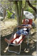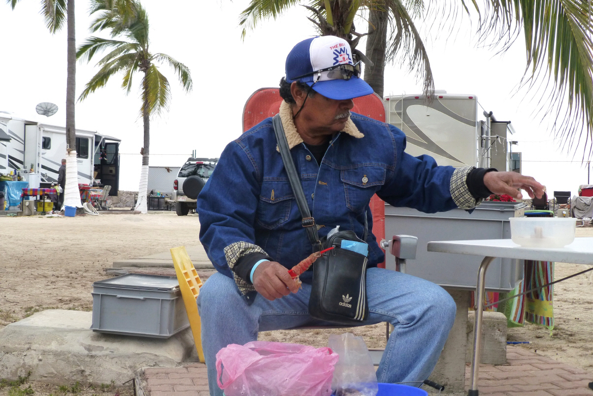 Im Camping will Kaspar einen riesigen Campingbus näher anschauen. Der US-Besitzer kommt mit Frau und drei Freunden dazu. Wir werden zum Apéro eingeladen. Diese Leute kommen alle Jahre für 4-5 Monate in die warme, billige Gegend. Kaum zu glauben, was da alles an Mobiliar angeschleppt wird: grosses Zelt, Gartenpolstergruppe, Esstisch, Kühlschrank, Grill, Lampen, Ventilator etc.