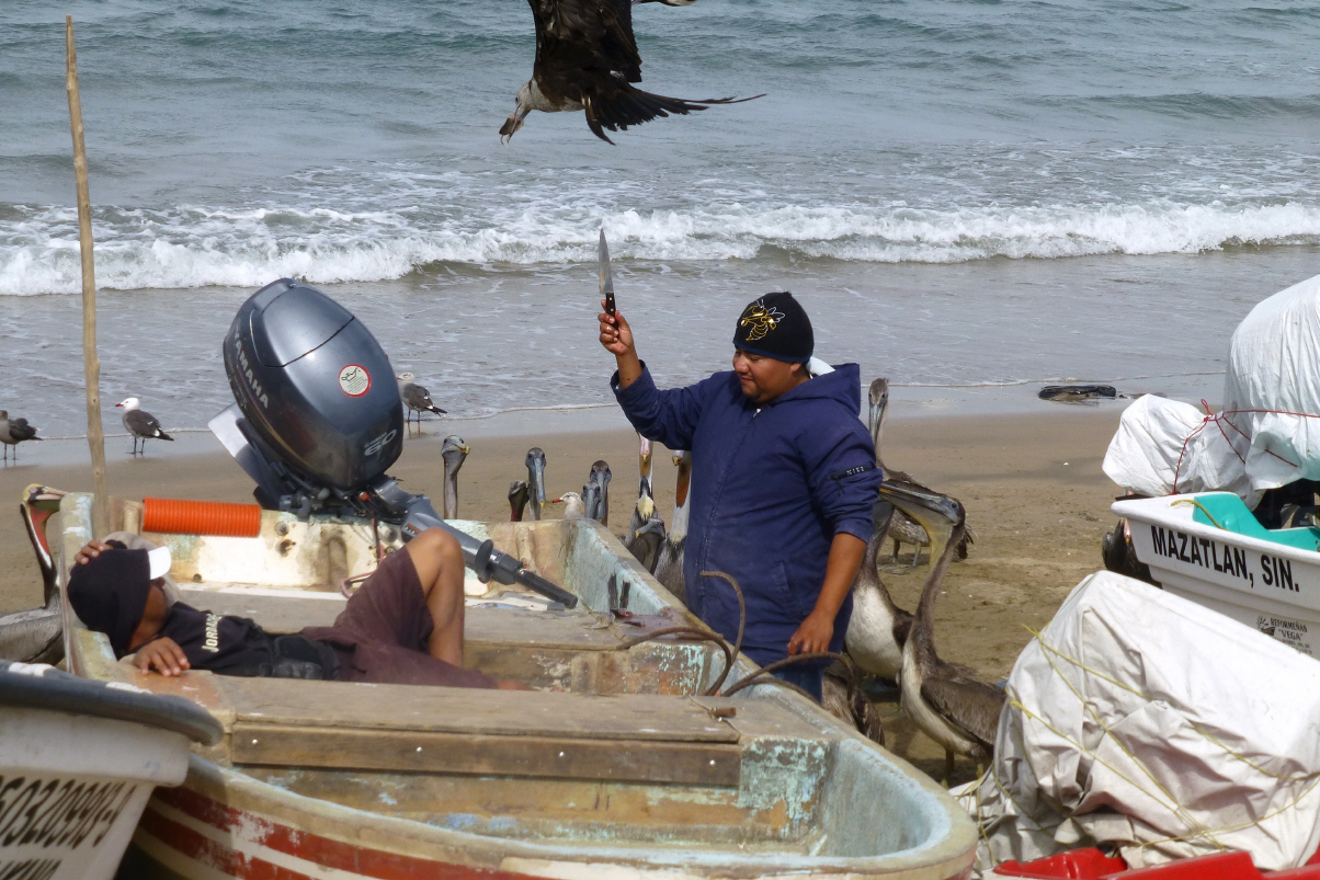 Kaspar hatte wieder einmal eine schlechte Nacht. Nun weiss er definitiv, dass er allergisch auf Seafood ist! Nochmals in die Stadt, aber nur bis zum Fischer Denkmal. Schauen den vielen Pelikanen zu, die auf Fischabfälle warten. Ein Fischer schneidet den Fischen den Kopf ab, spiesst ihn aufs Messer und hält das Ganze nach oben. Die Vögel stibitzen im Flug.