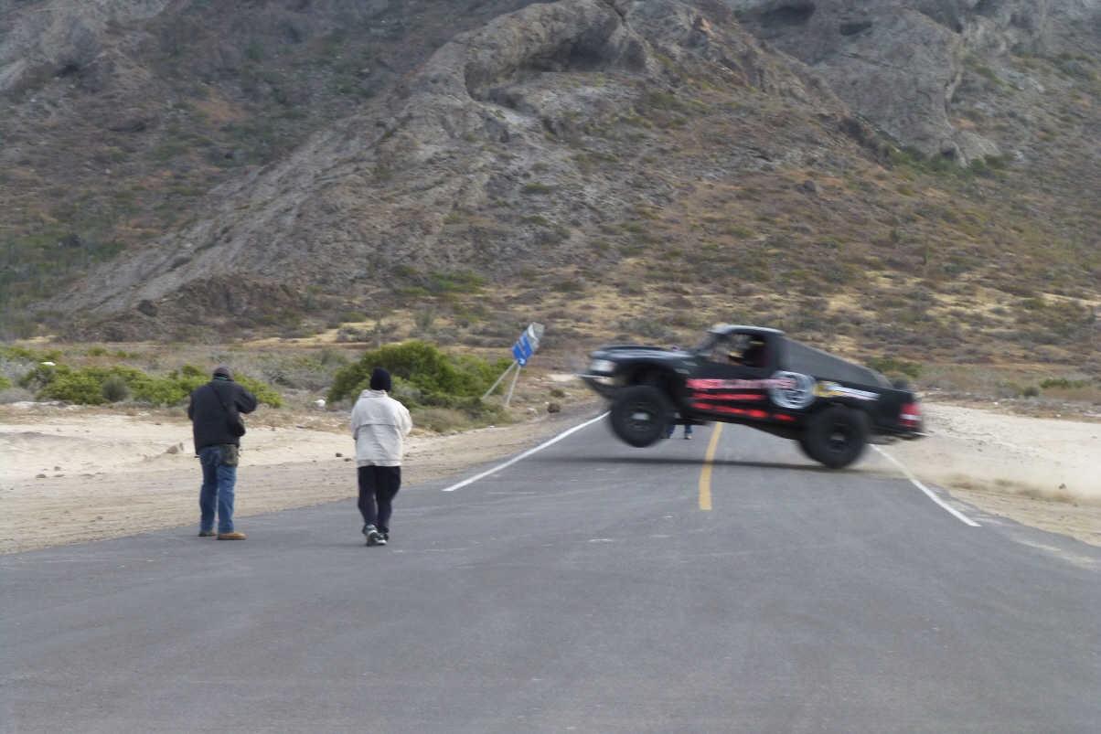 Hier filmt eine Crew ein allradtaugliches Auto mit Rennfahrer. Der Rennwagen ähnelt den Fahrzeugen des Dakar Rally. Der Reporter steigt durch die Fensteröffnung des Beifahrersitzes, wird angeschnallt, bekommt einen Helm aufgesetzt und die Post geht ab. Sie fahren total verrückt. Das Auto fliegt buchstäblich durch die Luft. Die Menschheit spinnt!