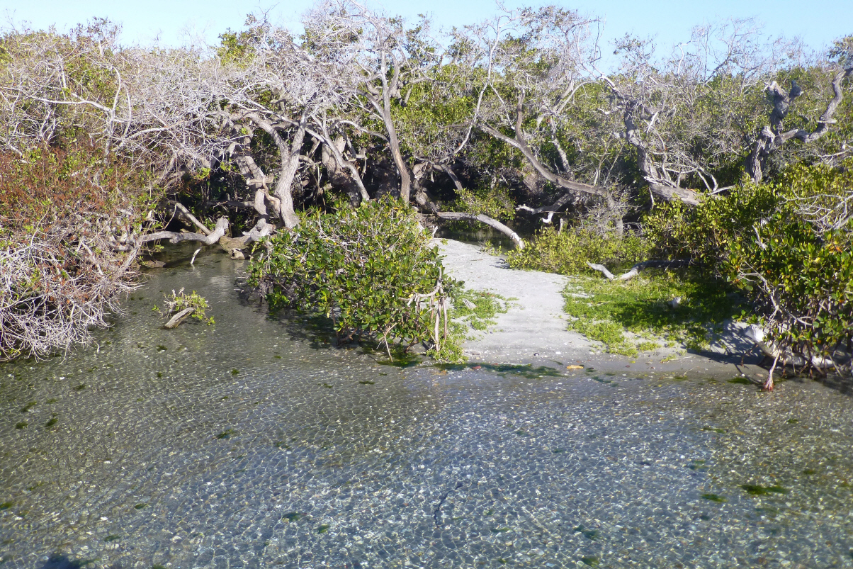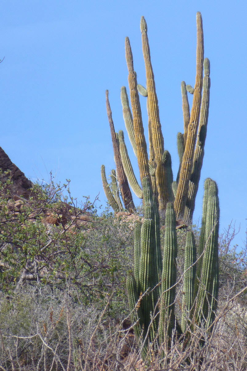 Kurz einkaufen. Zuerst müssen wir jedoch entscheiden, welchem Supermarkt-Wegweiser wir an der Hauptstrasse folgen wollen. Man stelle sich dies in Bülach oder Solothurn vor! Beim Tanken kommt Polizei mit Blaulicht und Sirene angebraust. Sie springen aus dem Auto und filzen einen Tankwart sowie den Motorradfahrer. Dieser wird später in Handschellen abgeführt. Über langweilige, gewellte, flache Strasse nach ‚Ciudad Constitucion‘, einer Industrie- und Agrarstadt. Auf dem Weg hierher gibt es bis kurz vor dem Ort nur Kakteen und Busch, dann plötzlich Landwirtschaft und grosse Orangenhaine. Mittags haben wir kurz angehalten. Da fährt doch ein Mercedes mit gefälschten Schweizer Nummernschildern neben uns. Der Fahrer stellt sich als Linus mit Jagdhund vom Muotathal vor. Geniesst unseren Schweizer Kaffee. Er ist mit Frau und Tochter vor ein paar Monaten in ‚Querétaro‘ gestrandet (Nähe Mexiko Stadt). Seine Frau arbeitet zur Zeit als Kindergärtnerin an der Schweizer Schule. Wir müssen mit dem MAN sowieso dorthin zur Garage und werden sie dann auf dem Camping besuchen. Er gibt uns Tipps, wo wir guten Käse kaufen können. In ‚Ciudad Constitucion‘ zweigt die Strasse ab und führt 65 km nach ‚Puerto Carlos‘, einer Whale Watching Destination. Der Schiffseigner will mehr als 200 US$ für eine Tour. Dies ist uns eindeutig zu viel. Hier ist eine Insel-Landschaft mit vielen, grossen Mangroven. Es ist Ebbe und somit sieht alles ein wenig trostlos aus. Weit und breit kein anderer Tourist. Parkieren und übernachten beim Touristen-Quai. Um 22 Uhr kommen die Teenager aus dem Dorf, schwatzen, lachen neben dem Camper. Punkt 23 Uhr ist zum Glück Ruhe!