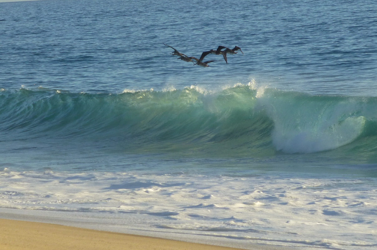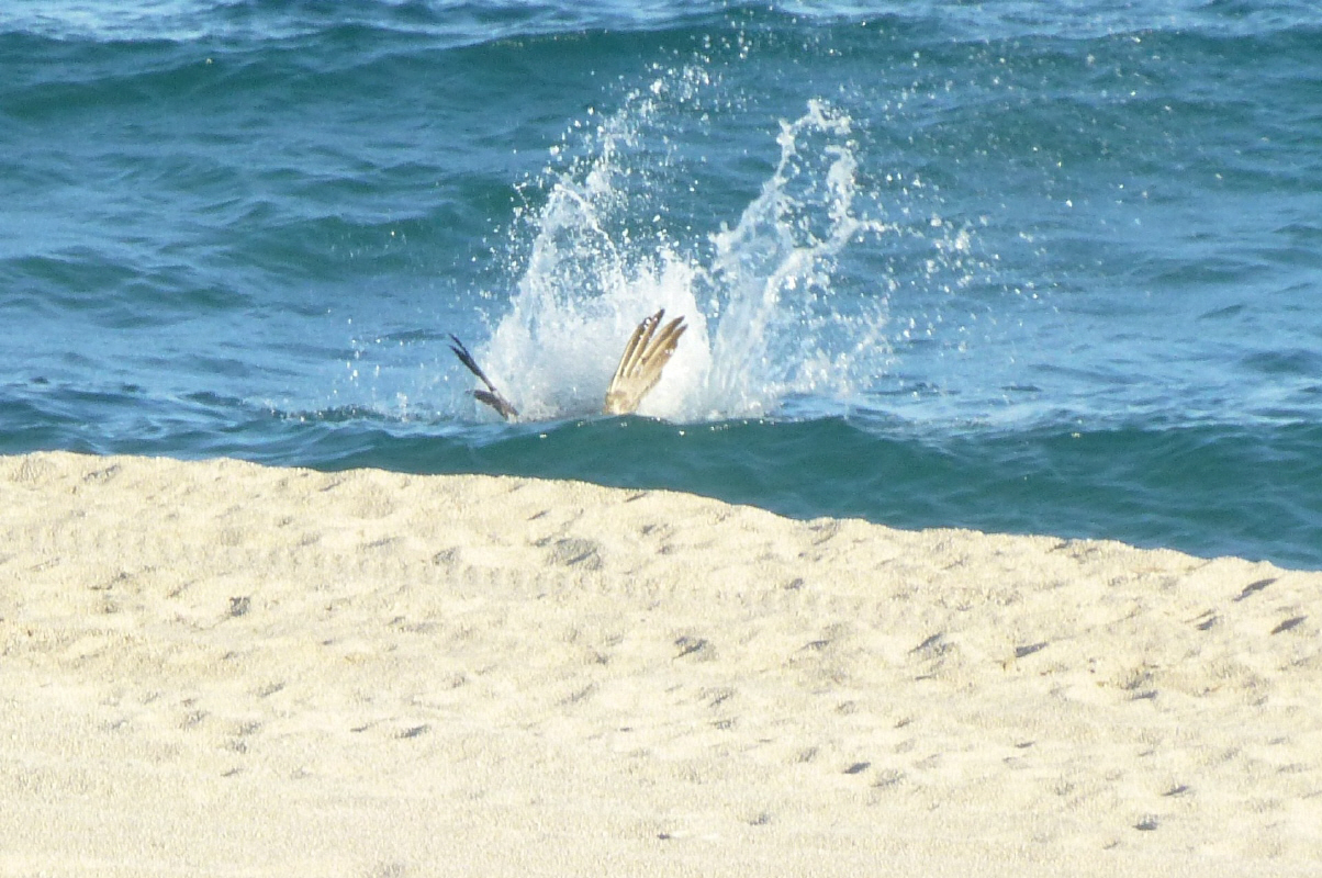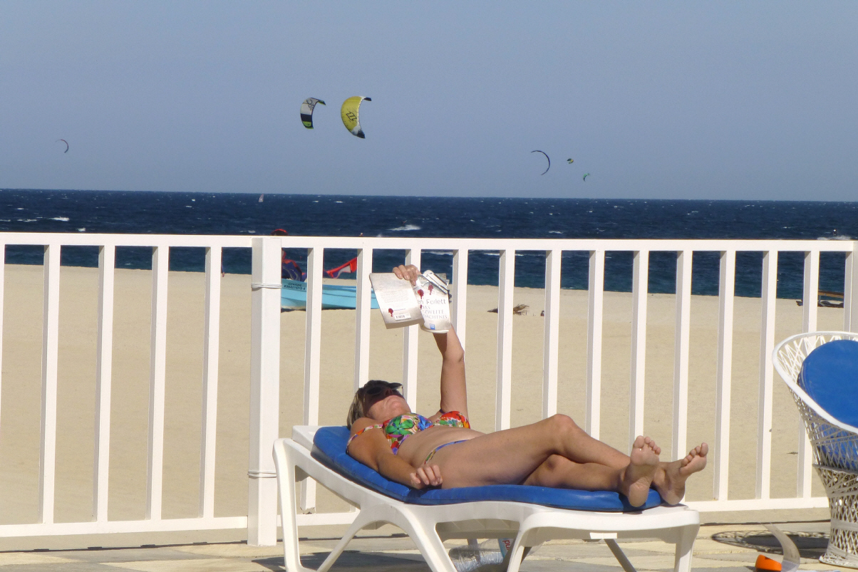 Dann faulenzen, lesen, essen, Margherita trinken, den Surfern zuschauen und versuchen, die Pelikane im Sturzflug zu fotografieren.