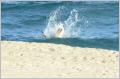 Ein Tourleiter von ‚Seabridge‘ ist hier. Unterhalten uns gut mit ihm. Durch dieses Palaver bringen wir die Wäsche etwas spät zum Waschsalon. Es ist wieder einmal Wochenende und so reicht es erst bis Montag 11.30 Uhr. Dadurch sitzen wir zwangsläufig einen Tag länger im Camping. Wir stürzen uns ins Bikini und Badehose. Bigi will an den Pool am Strand, aber für Kaspar ist Arbeit am MAN angesagt. Zuerst kriecht er unter den MAN. Er wirkt schon etwas gstabig. Es sieht zum Glück sofort den Fehler am Verteilgetriebe. Den Schalter haben wir schon einmal in Chile repariert. Da nicht das exakt richtige Ersatzteil montiert wurde, ist die Schaltelektronik nun wieder ausgefallen. Er überlegt wie, aber am Schluss ist alles wieder fest angebunden. Nur ob die anderen Schalter für die Differenzialsperre funktionieren, konnte er nicht testen. Noch mit der Leiter die Birne vom hinteren, oberen Standlicht auswechseln. Nun scheint wieder alles zu funktionieren. Am Strand ist es sehr windig und daher recht kalt. Die Surfer mit und ohne Schirm sind unterwegs. Sie springen über die Wellen.