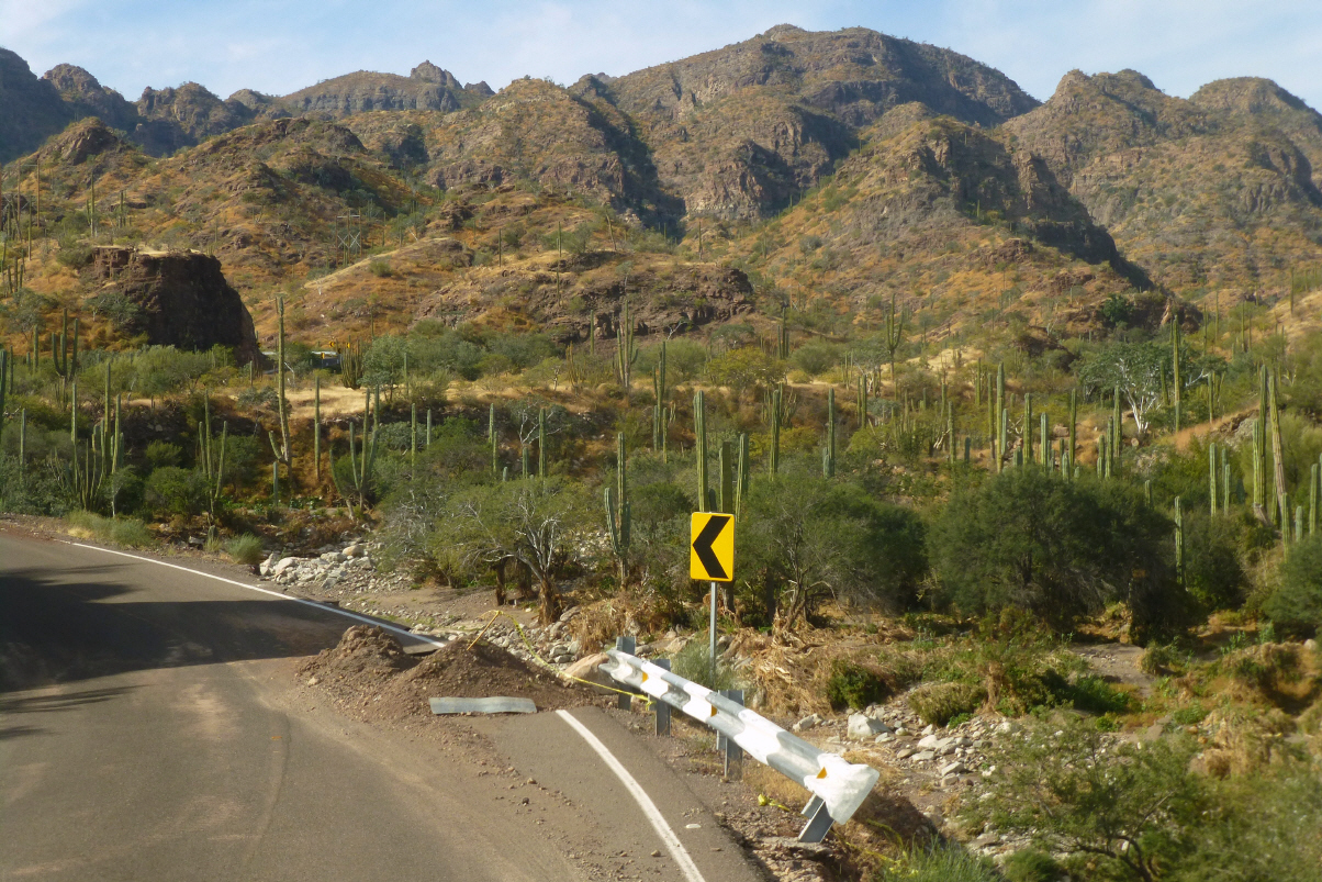 Fahren zurück nach ‚Ciudad Constitucion‘ und suchen ein Kaffee mit Wi-Fi. Skypen mit Regula und gratulieren ihr zum Geburtstag. Über eine Ebene und einen kleine Pass quer über die ‚Baja‘ auf die andere Seite.