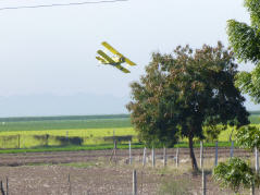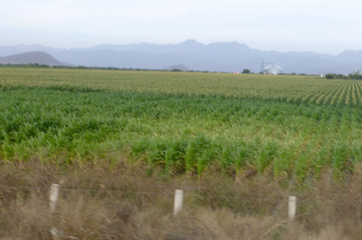 Ab nach ‚Los Mochis‘. Riesige Gewächshäuser, die von weitem wie Seen aussehen, säumen die Autobahn. In der Ferne sind Doppeldecker-Sprühflugzeuge im Einsatz. Sie stechen auf die Felder nieder und sprühen Insektizid über den Mais. Wenig später können wir diese Flugzeuge im Hangar einer kleinen Flugzeugbasis besichtigen. Diese Flieger sind Tiefdecker mit 9-Zylinder Sternmotoren und zwei- resp. dreiblättrigen Propellern. Wir fotografieren. Natürlich kommen die Leute und schauen uns fragend an: Werksspionage? Wir erfahren, dass diese Flieger 1200 Liter Insektizid mitführen können. In Spanien werden solche Flugzeuge als Löschflugzeuge bei Waldbränden eingesetzt. Die Start- und Landebahn ist 600 m lang.