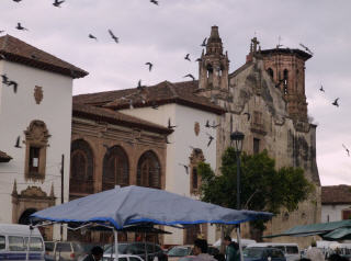 Zuerst den Berg steil hinauf zum ‚Templo Valenciana‘. Eine schöne Barockkirche welche vom wohl reichsten Mann, dem Silber-/Gold-Minenbesitzer im Jahre 1720 der Stadt ‚Guanajato‘ geschenkt wurde. Der Führer erklärt uns, welcher Typ Kirche wie heisst und wann man eine ‚Virgine‘ (Jungfrau) hinter dem Altar vorfindet. Natürlich werden wir in zwei Souvenirläden geschleppt. Im Steinladen können wir uns beherrschen, aber im Süsswarengeschäft nicht mehr. Nun geht’s in ‚Museum de Inquisation‘. Eigentlich haben wir keinen Bock auf die Folterinstrumente, gehen aber doch mit. Am Schluss sind wir etwas schneller draussen an der Sonne. Die Mexikaner haben ein spezielles Verhältnis zum Tod. Überall kann man Skelette kaufen. Auch die Souvenirgeschäfte sind voll von farbigen Skeletten, aus Zuckermelasse und mit Zigarette. Dann zu einer der zwölf stillgelegten Silber-/Goldminen. Hier wird Kaspar zum x-gten Mal Zeuge, wie die Angestellten das Museum, für das sie arbeiten, bescheissen. Also: an der Kasse Ticket bezahlen, am Eingang nimmt einem der Guide das Ticket ab ohne zu lochen oder zerreissen. Dieses wird dann später an die Kasse zurückgebracht und wieder verkauft. Erst als Kaspar sagt, er möchte das Ticket für das Tagebuch behalten, erhält er diese zurück. Aufgrund der nicht nacheinander liegenden Nummern der Tickets ist der Trick bestätigt! Na ja, so spektakulär war der 300 m lange Bergwerkstollen auch nicht – oder wir haben halt einfach schon zu viel gesehen! Zurück ins Zentrum. Hier erwarten uns die unterirdischen Strassen. Die alten Bergwerkstollen sind zu einem Strassennetz ohne Ampeln zusammengeschlossen.