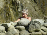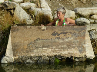 Wir haben die Thermalbäder gefunden! Zwei Wasserlöcher und ein gemauertes Becken von 1x1,5 m, Wassertemperatur ca. 37 Grad. Genau Platz für zwei Personen. Nach dem Frühstück brechen wir zu einer Wanderung auf. Wir möchten zum kleinen Wasserfall aufsteigen. Der Weg geht über Stock und Stein – mehr über Stein als Stock! Nach einer halben Stunde haben wir genug und kehren um.