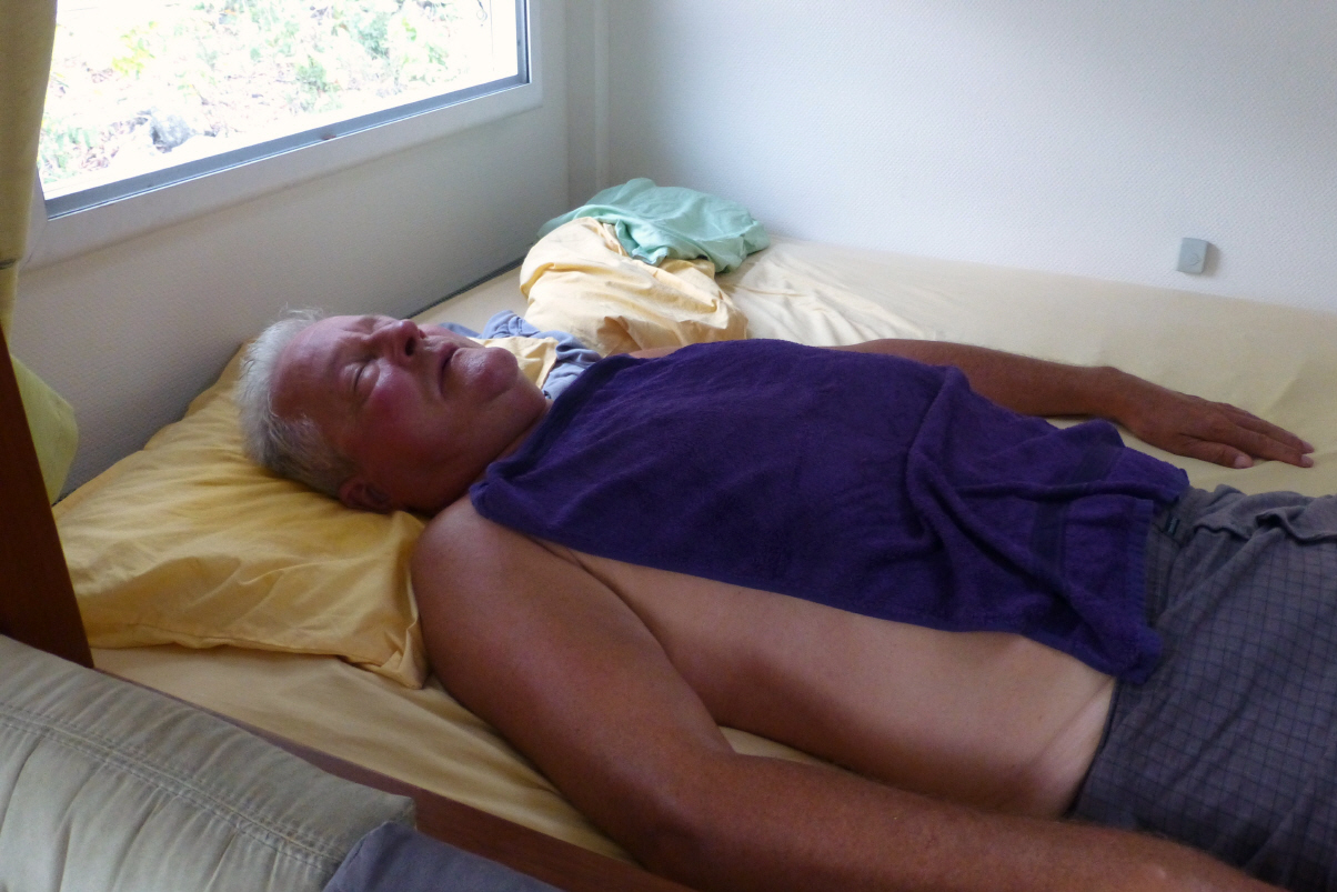 Es gibt nicht viel zu erzählen. Wir sind nicht die einzigen Camper. John aus Holland/Belgien sowie Paul aus Zürich mit seiner argentinischen Ehefrau Anna kommen auch noch. An einem Abend lädt Bigi alle zu Spaghetti ein. Wir haben noch Bolognais und Tomatensauce im Gefrierfach. Wir geniessen einen lauen Abend mit guter Gesellschaft. Kaspar wird jedoch sehr schnell müde, denn er fühlt sich einfach nicht so hundertprozentig. Tagsüber liegt er immer wieder einmal im Camper und misst ab und zu auch Fieber. Er denkt es ist wieder die Hitze!
