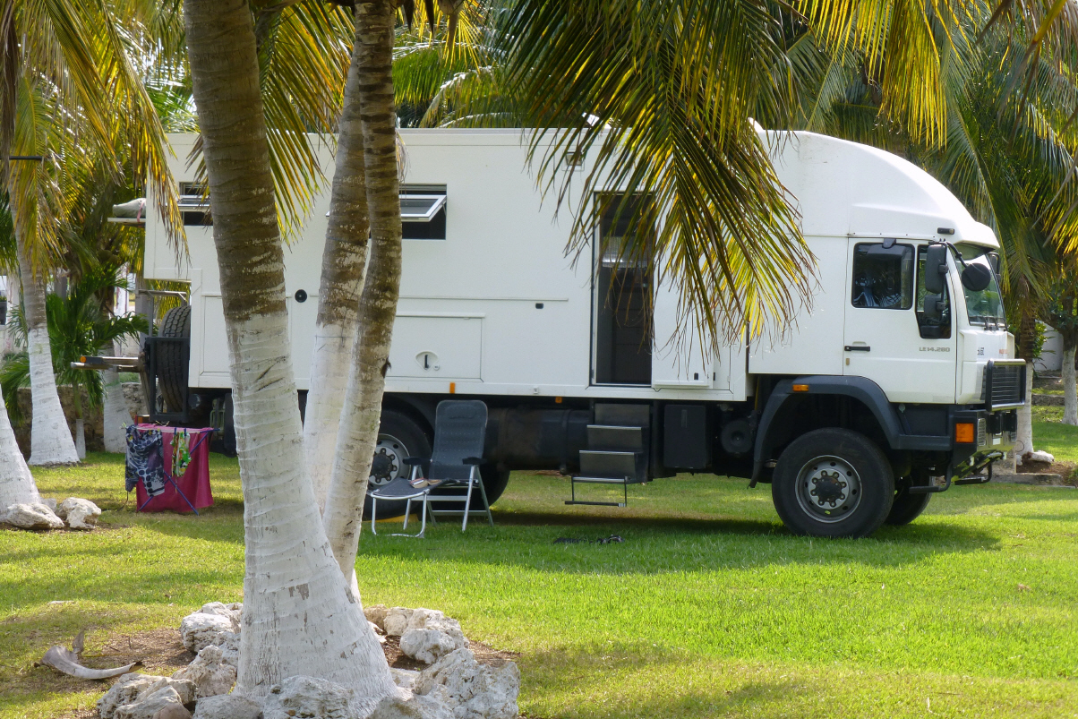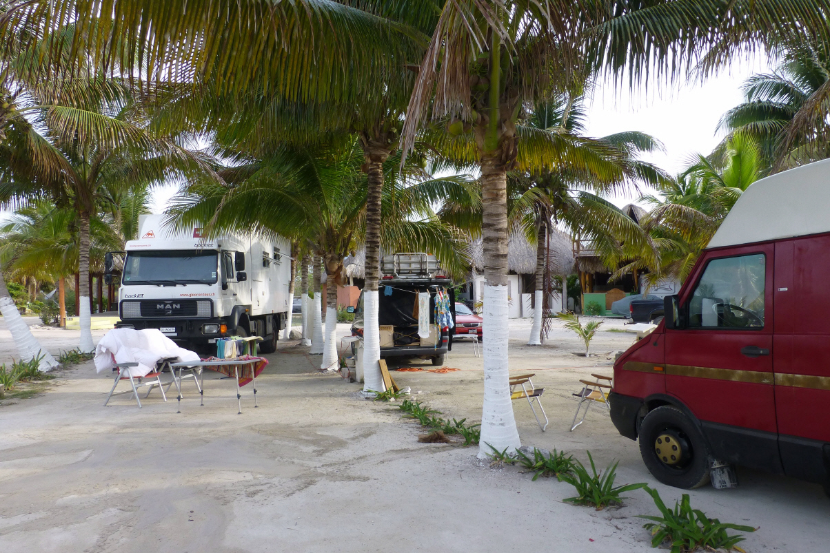 Kurz vor ‚Playa del Carmen‘ finden wir ‚Paa Mul‘ mit dem RV Park, Restaurant und einem kleinen Hotel. Wir sehen die Preisliste: US$ 45 pro Nacht. Kaspar winkt ab. Der Besitzer merkt, dass wir mit diesem Preis nicht einverstanden sind und gibt uns den Campingpreis: 300 Pesos (22 Franken). Baden in der Karibik und im Pool. Schöne Bucht. Lesen im Liegestuhl und genehmigen uns einen starken Margerita am Strand. Zum Glück liegen wir schon.