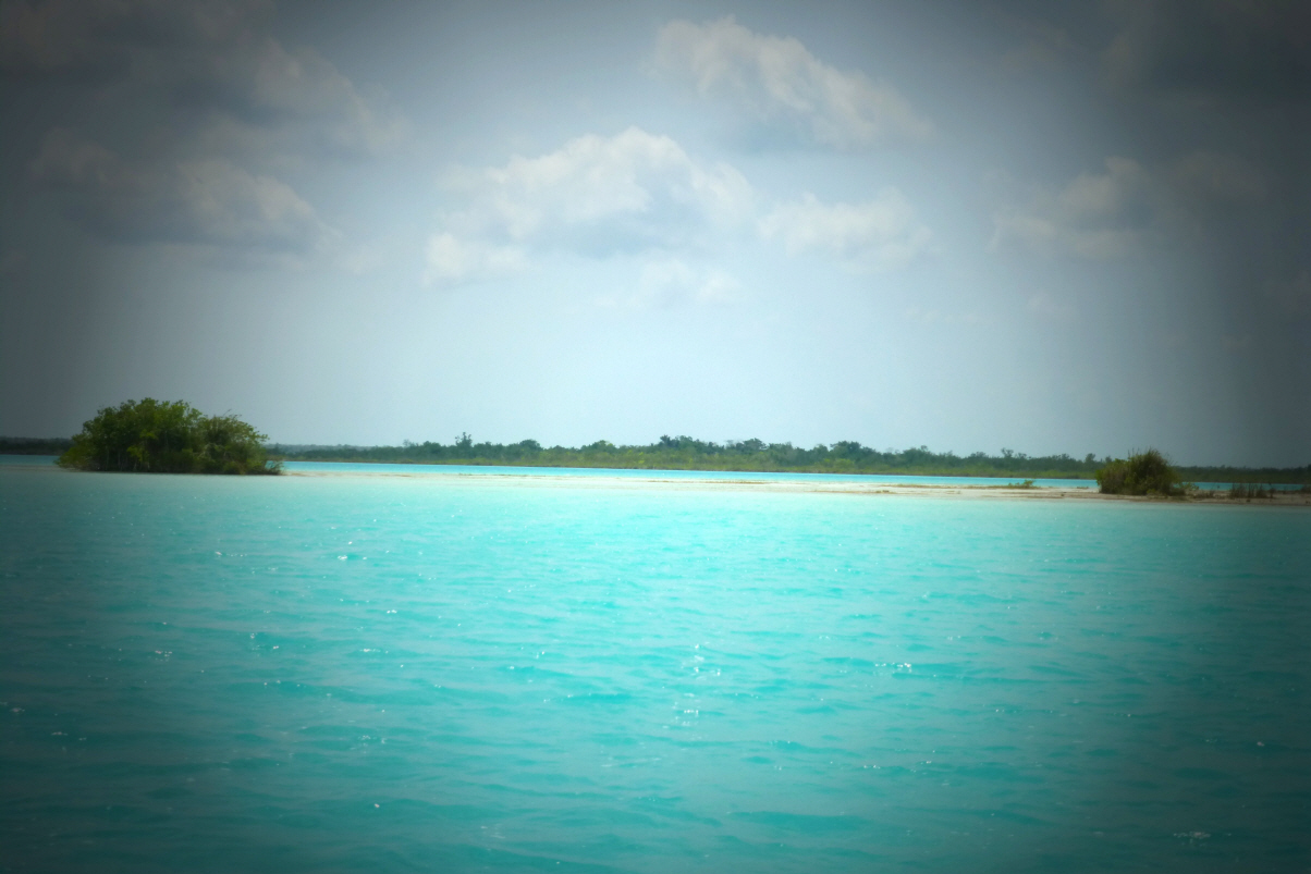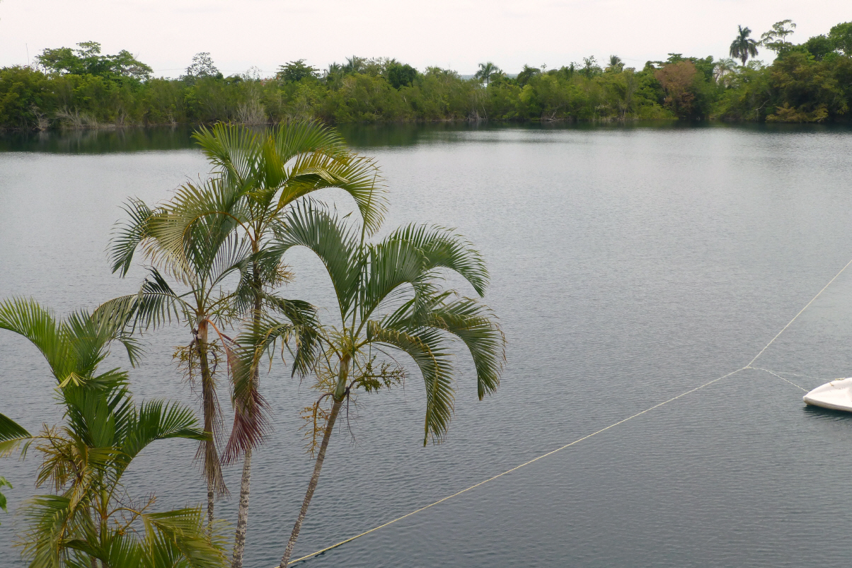 Der Himmel ist wolkenverhangen. Tatsächlich fängt es an zu regnen. Nach einer Viertelstunde ist der Spuk vorbei. Kaspar freut sich, weil nun der MAN endlich ein wenig gewaschen wird. Er hat aufgehört jede Woche Fenster zu putzen, da Bigi ihn angezündet hat. Die Regenzeit hat begonnen. Meistens soll es in der Nacht regnen. Bevor wir Richtung Nord fahren, kaufen wir bei ‚Chedraui‘ ein. Besuchen die ‚Cenote Azul‘, welche fast an der Hauptstrasse liegt. ‚Cenotes‘ sind sehr grosse Süsswasserlöcher. Hier in Yukatan gibt es nur unterirdische Flüsse und die grossen ‚Cenotes‘. Das Untergrundflusssystem ist noch fast unerforscht. Baden zwischen grossen Fischen im glasklaren Wasser. Auf der Nebenstrasse der ‚Lagune Bacalar‘ entlang und eine Campingmöglichkeit suchen. In ‚Pueblo Bacalar‘ werden wir beim ‚Balneario Publico‘ fündig. Nun stehen wir einige Meter von der Lagune entfernt. Haben heute drei Mal gebadet: Salzwasser in der Karibik, Süsswasser ‚Cenote Azul‘ und ‚Lagune Bacalar‘.