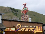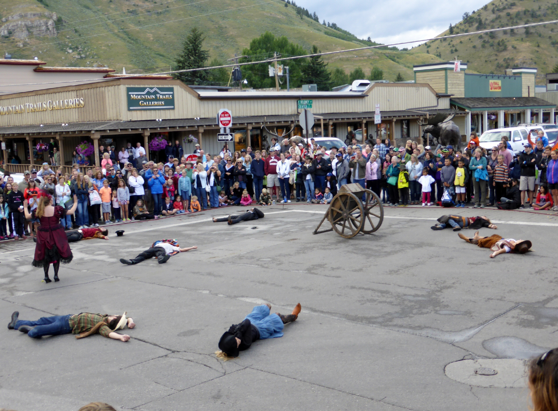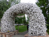 ‚Jackson Hole‘ ein versnobtes Skigebiet für Amerikaner. Im Sommer werden die Touristen mit einer abendlichen Schiesserei mit Knallerei und vielen Toten unterhalten. An allen vier Eingängen zum Hauptpark stehen Torbogen aus Elk- resp. Hirschgeweihen. Im Herbst kommen ca. 8‘000 Hirsche vor die Stadt zum überwintern. Sie werden mit Gras-Pellets gefüttert. In früheren Zeiten sind die Tiere in tiefere Lagen weitergezogen, was ihnen heute durch die Zivilisation verwehrt ist.