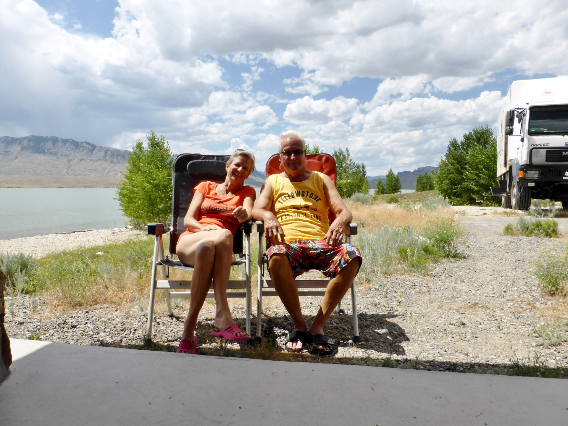 Jeff und Slid mit ihrem Fifth-Wheeler und grosser Zugmaschine treffen wir hier innert zwei Jahren rein zufällig schon zum fünften Mal. Sie reisen mit ihren zwei dreissig jährigen Papageien. Jeder im eigenen Käfig, da sie sich nicht verstehen. Wir verbringen schöne Abende und am Schluss hat die Whiskyflasche ein Loch. Erfahren viel über Amerika.