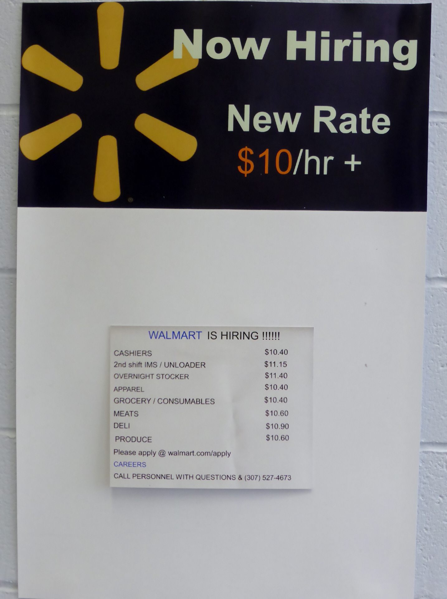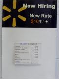 Wir schauen uns bei ‚Walmart‘ (wie MMM) den Aushang der Jobs mit der Lohnliste an.