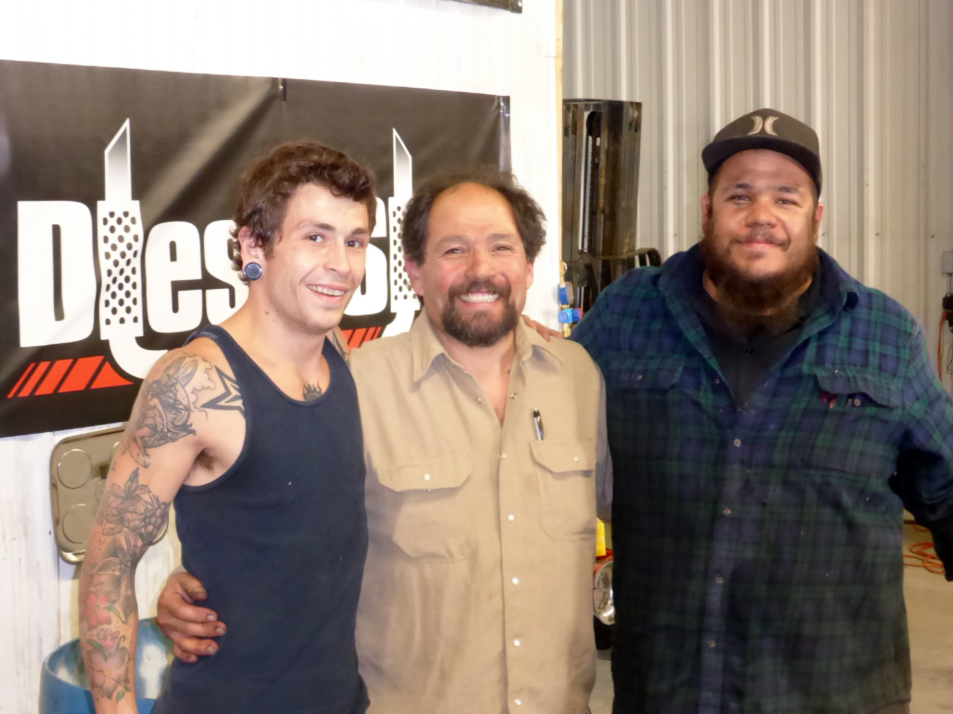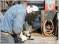 Unser altbekanntes Problem (seit 2010 Argentinien) ist wieder aufgetreten: der Stahlträger mit dem Luftfilter ist wieder einmal gebrochen und schlägt an die Rückwand. Über Umwege haben wir die Telefonnummer eines ‚fliegenden Schweissers‘ bekommen. Oh weh, heute Samstag ist nur der Telefonbeantworter zu Hause?! Hinterlassen unsere Mitteilung und Telefonnummer, da er uns für heute zugesagt hat. Eine halbe Stunde später ruft er zurück. Er hatte Probleme Bigi’s Englisch zu verstehen und musste ein paar Telefonnummern ausprobieren. Wir warten auf dem Walmart Parkplatz und schon bald kommt er angefahren. Auf seinem Pick-up schleppt er so einiges mit: grosser Generator, zwei Schweissmaschinen, drei lange Schweisskabel auf Rollen, Schraubstock, Motor-Eisensäge, Werkzeug und allerlei Alteisenstücke. Natürlich ist er erstaunt, was für ein Monster er schweissen soll. Besichtigt den Schaden und kratzt sich am Hinterkopf. Kaspar muss die Fahrerkabine anheben, damit der Luftansaugschlauch demontiert werden kann. Bringen die Strebe in die richtige Position und er fixiert sie mit einem Schweisspunkt. Dieses Mal ist die Strebe am Chassis gebrochen und nicht wie vorige Male 10 cm daneben. Er schweisst den Schaden und verstärkt den Träger noch mit einem 5 cm Flacheisen. Er braucht 2 Stunden für die Reparatur und es kostet uns 200 $. Nun sind wir froh, dass unser MAN wieder zusammengeflickt ist.