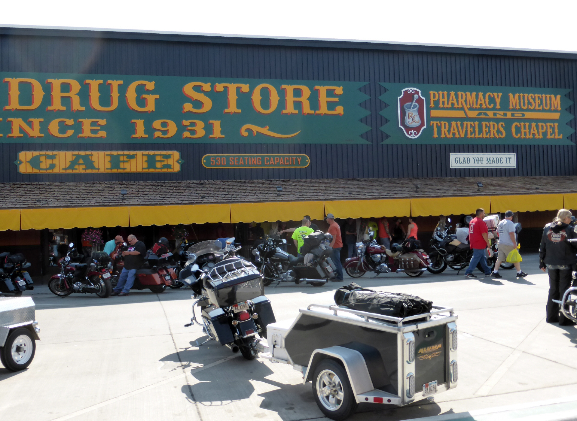 Coffee only 5 Cent! Das muss was spezielles sein, also fahren wir bei ‚Wall‘ hinaus. ‚Wall Drug Store‘ ist Restaurant und Warenhaus in einem und wurde 1931 gegründet. Die Besitzer - Lehrerin und Apotheker - gaben sich 5 Jahre Zeit um das Geschäft zum Laufen zu bringen. Den Ort haben sie ausgewählt, da es hier eine katholische Kirche gibt. Auch haben sie im Gebet darum gerungen und wurden bestätigt. Nach viereinhalb Jahren hat die Frau während der Mittagsruhe die in der Ferne vorbeifahrenden Autos gehört. Nun kam ihr die zündende Idee: wir offerieren gratis eisgekühltes Wasser. Während der Mann noch die Tafeln an der Strasse aufstellte kamen schon die ersten Leute. ‚Mount Rushmore‘ war in der Entstehung und so nahmen sie an, dass in Zukunft viele Touristen hier vorbeifahren werden. Im zweiten Jahr hatten sie bereits 8 Angestellte. Es wurde ein gutes Geschäft. Es gibt auch eine Kapelle für Reisende. Wir geniessen zusammen ein opulentes Frühstück.