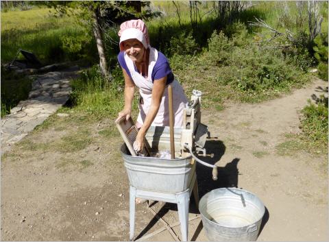 Aber in dieser Höhe mit dem kurzen Sommer gedieh die Landwirtschaft nicht. Der Mann lud seine Saufkumpane fürs Weekend hierhin ein. Der Frau hat es nach dem Wochenende aber gereicht und sie sagte:‘ das nächste Mal, wenn du deine Freunde einlädst, so muss jeder 2 $ pro Tag bezahlen – das war die zündende Idee für ein Hotel! Kaspar zieht sich den 35 kg schweren Büffelmantel an. Bigi legt die alte Schürze mit Häubchen an und wäscht am Holzzuber die Socken.
