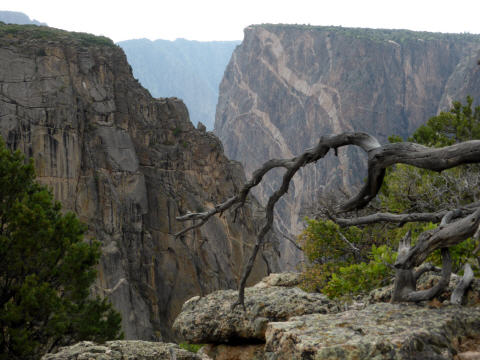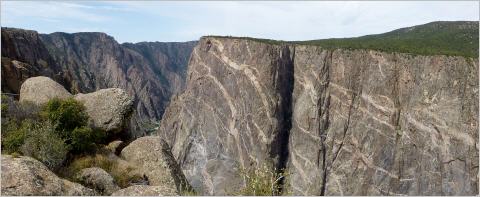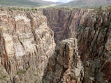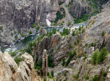 Der Canyon ist aus schwarzem Granit, 700 m tief, oben lediglich 400 m breit. Wenn man hinunter schaut so wird einem fast schwindlig. Von der Rim-Strasse hat man eine fantastische Sicht in die tiefe Schlucht.