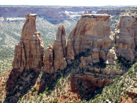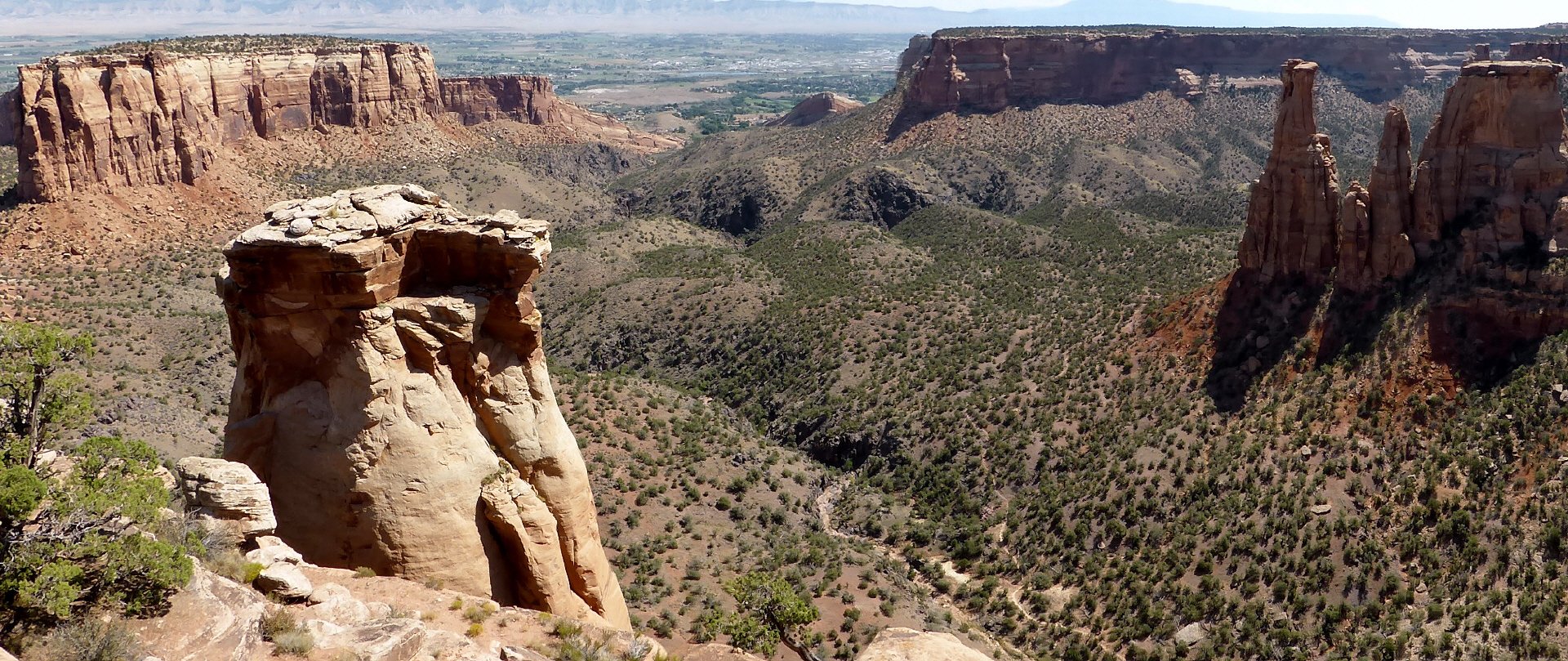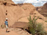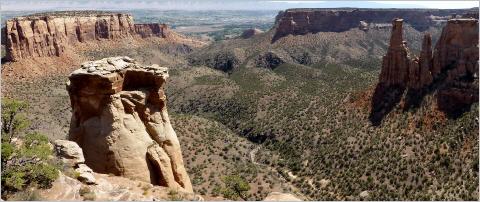 Fahren oberhalb des Canyon die gewundene, spektakuläre Strasse ab. Lassen die Landschaft auf uns wirken. Auf dem ‚Independence Rock‘ wird jeweils am 4. Juli (Nationalfeiertag) durch 100 Kletterer die USA-Flagge gehisst. Das erste Mal war es John Otto im Jahre 1907, der Gründer des ‚Colorado National Monuments‘. Er lebte bis zu seinem Tode im Jahre 1927 hier und war auch der erste Ranger mit einem Monatseinkommen von 1 $. Er war ein etwas verschrobener Typ. Er wollte, dass seine Frau im weissen Hochzeitskleid auf den ‚Independence Rock‘ klettert. Sie weigerte sich und so haben sie unten im ‚Wedding Canyon‘ geheiratet. Die Ehe dauerte gerade mal drei Wochen.