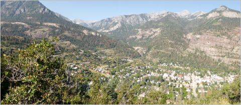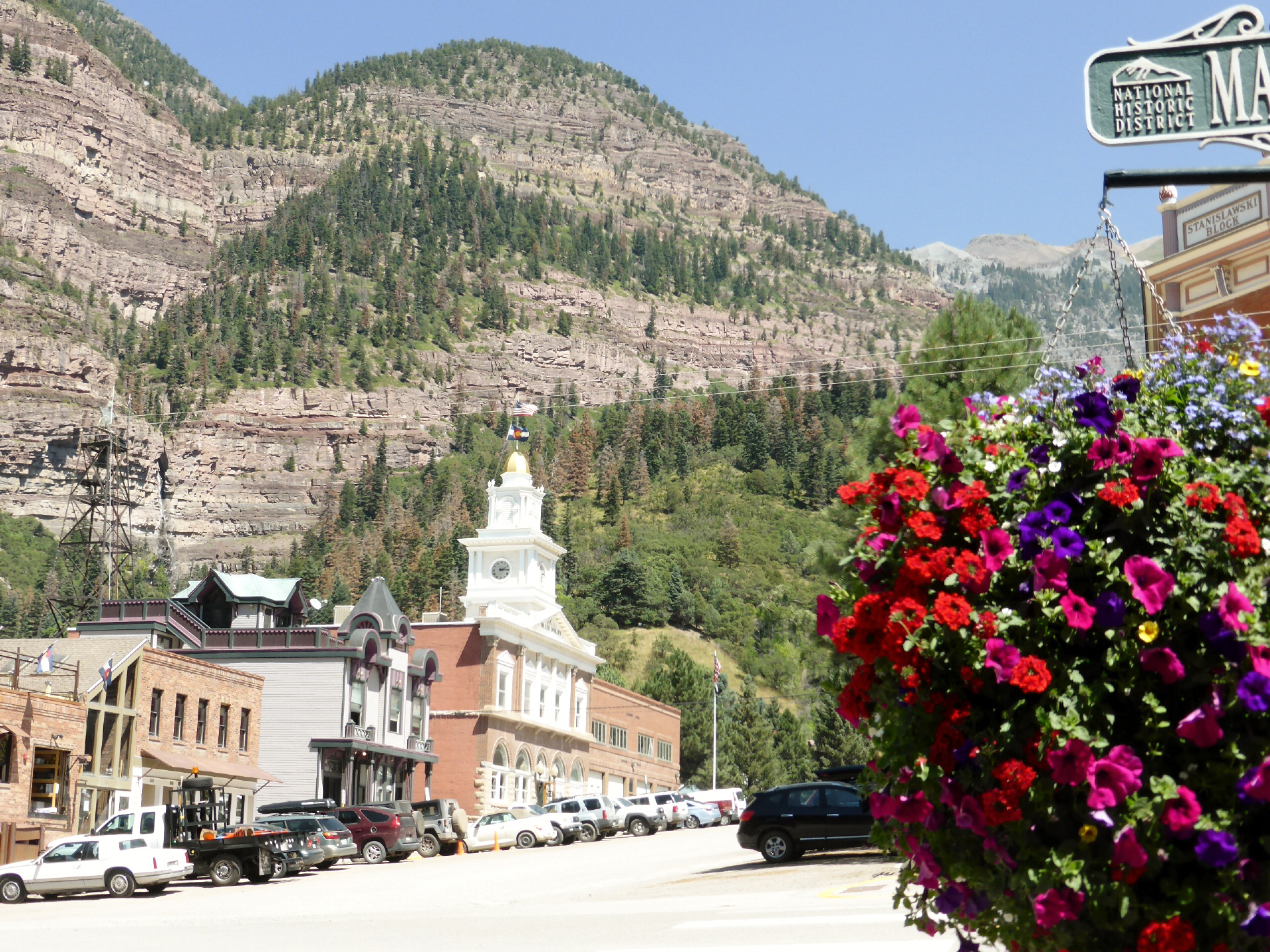 ‚Ouray‘ liegt in einem Talkessel auf 3000 m und ist mit Viertausendern umgeben. Im Gegensatz zur Schweiz wachsen hier die Nadelbäume bis auf ca. 3500 m hinauf. Bummeln durch den schönen Ort, trinken Espresso und essen ein Stück handgemachte Milchschokolade mit Mandeln.