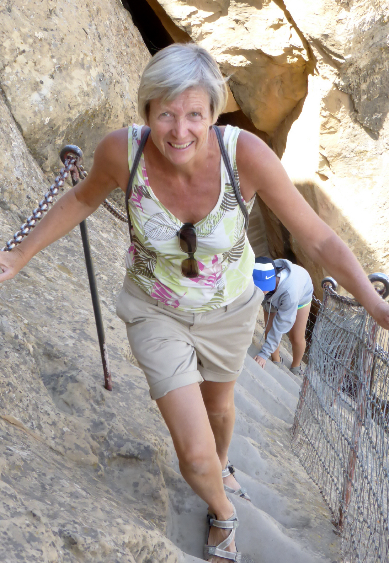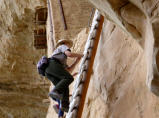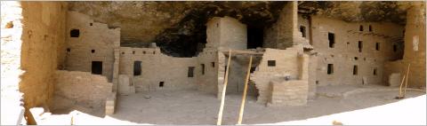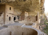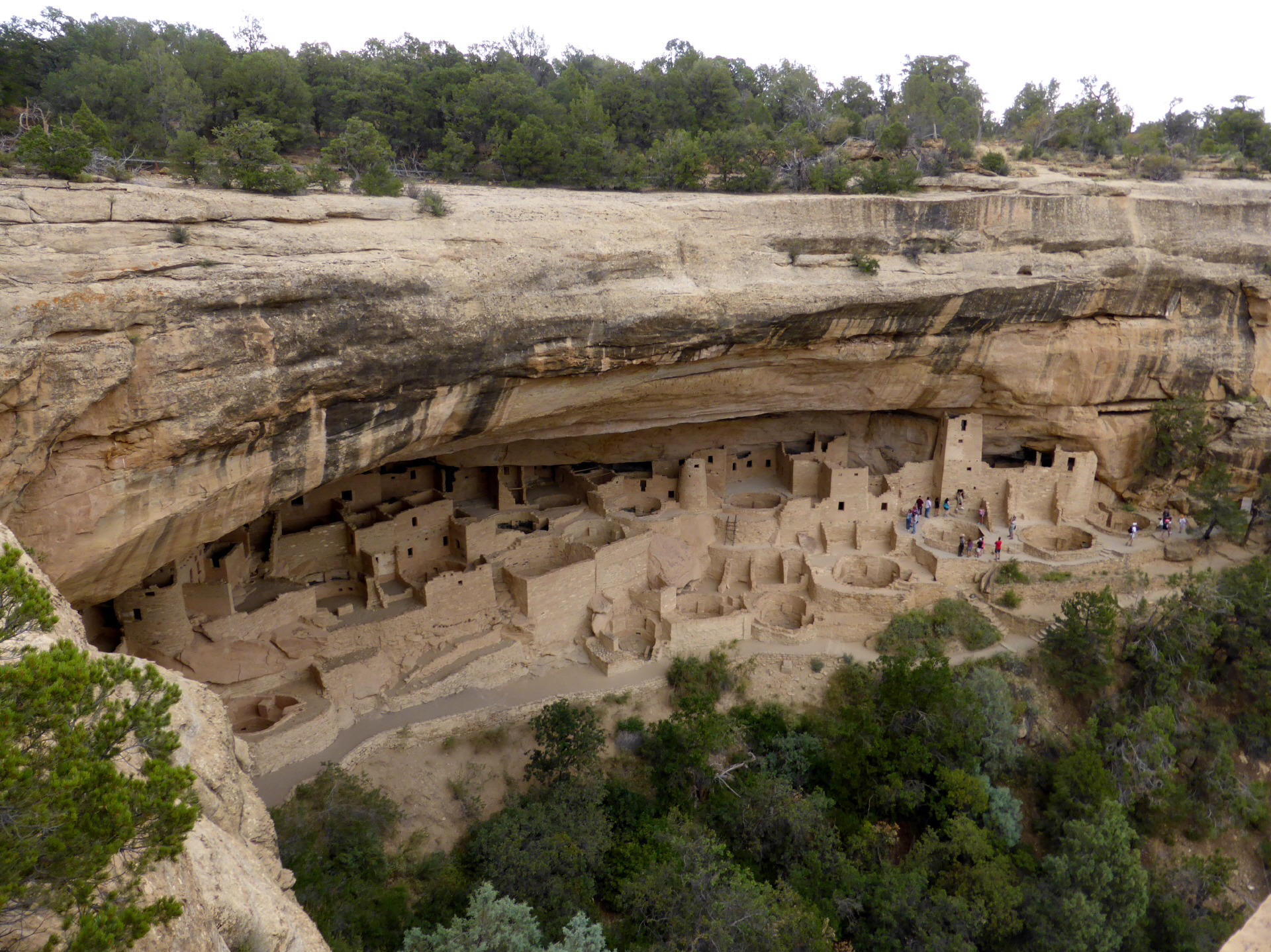 ‚Cliff Palace‘ ist die grösste und bekannteste Indianersiedlung im Fels. Alle Behausungen sind im 12./13. Jh. entstanden. Hier lebten bis zu 150 Personen, vermutlich zuerst 500 Jahre auf der Ebene und dann später in den Felshäusern, welche sie im 13. Jh. verliessen und nie mehr zurück kehrten. Über den Grund, weshalb die Leute hier weggezogen sind, gibt es nur Spekulationen: eine gross Dürre, der Boden war für Farming ausgelaugt oder sie sind zu ihrem Zentralpunkt in der vierten Welt aufgebrochen. Die Indianer waren gute Bauern, Töpfer, Korbflechter und Jäger. Jede Familie hatte eine ‚Kiva‘: ein runder, überdachter Raum mit Feuerstelle, der meist nur durch eine kleine Öffnung von oben zugänglich war und als Gemeinschafts-/Zeremonieraum genutzt wurde. Teils müssen wir über lange Holzleitern klettern und einmal durch ein Loch und einen 5 m langen Tunnel kriechen. Wir werden immer wieder ermahnt, ja keine Wände anzufassen, da es vom Hautfett Flecken gibt und das Gestein beschädigt wird. Der Mann vor Kaspar bleibt mit seinem Hintern fast im Loch stecken und Kaspar ruft: Wände nicht berühren! Fantastische Aussicht in den Canyon hinunter. 60-70 % des Waldes wurde in den letzten 20 Jahren durch Feuer zerstört. Die div. Ranger-Touren sind sehr interessant und lehrreich.