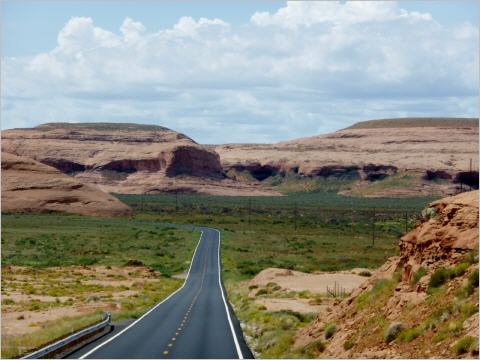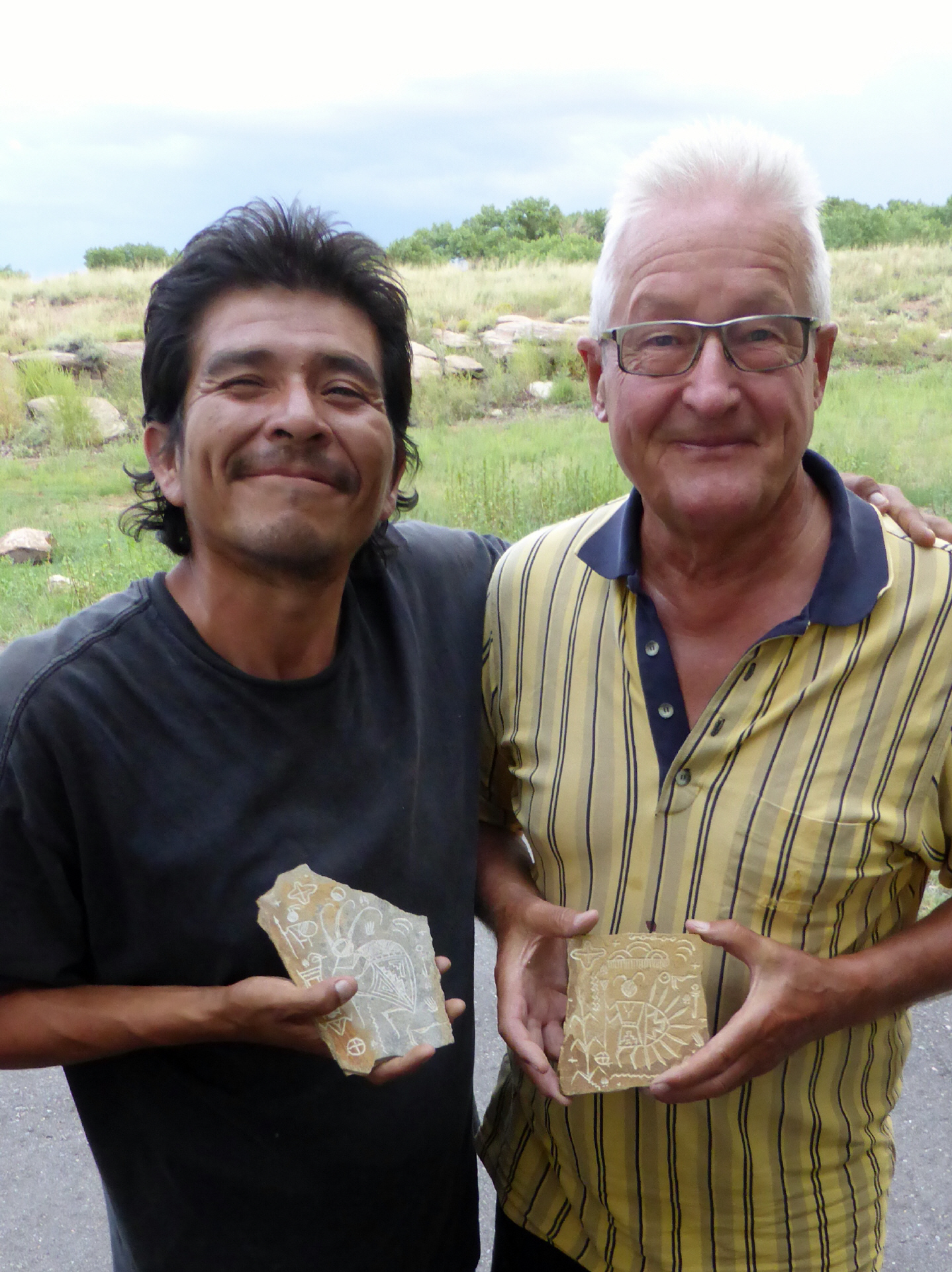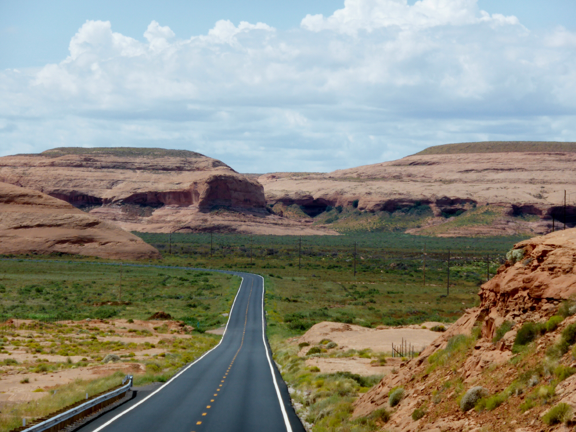 Das Monument wird von den Navajo-Indianer verwaltet. Hier stossen die Staatsgrenzen von Arizona, New Mexiko, Utah und Colorado zusammen. Natürlich viele Flaggen und Erinnerungssteine. Rundherum die Souvenirstände der Indianer mit Ketten und z. T. hochwertiger Handwerkskunst. Kaspar kauft sich eine Schnurkrawatte mit Büffelschild, so richtig amerikanisch. Das Wetter klärt auf und wir fahren durch das grösste Indianerreservat der USA. Verrückte Berge, ähnlich wie das ‚Monument Valley‘.