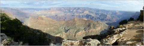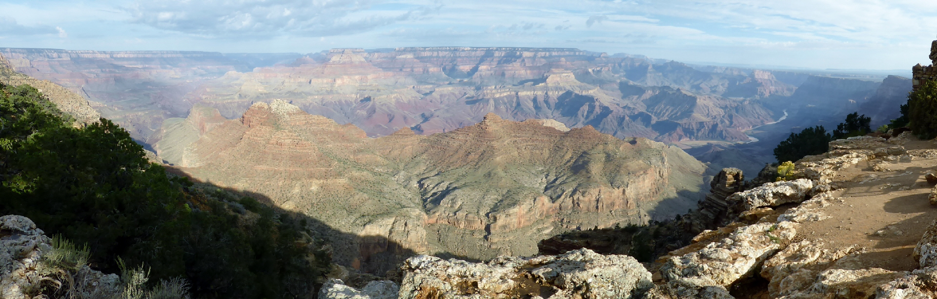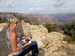 Um die Mittagszeit kommen wir im ‚Dessert View Camping‘ an und sitzen bei Regenwetter den Rest des Tages im Camper - zum Glück waren wir schon einmal hier! Am Nachmittag gibt’s ein feines Lachs Häppli mit einem Glas Rosé und zum Znacht dann Bolognaise. Kaspar verliert immer beim Triomino-Spiel - macht kein Spass! Am nächsten Tag spielt das Wetter mit und es herrscht klare Sicht. Lassen uns vom Grand Canyon in den Bann ziehen und unternehmen die obligate Wanderung zum Village. Verfolgen immer aus den Augenwinkeln die Gewitter rundherum, aber wir bleiben trocken.