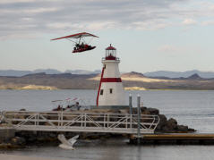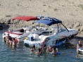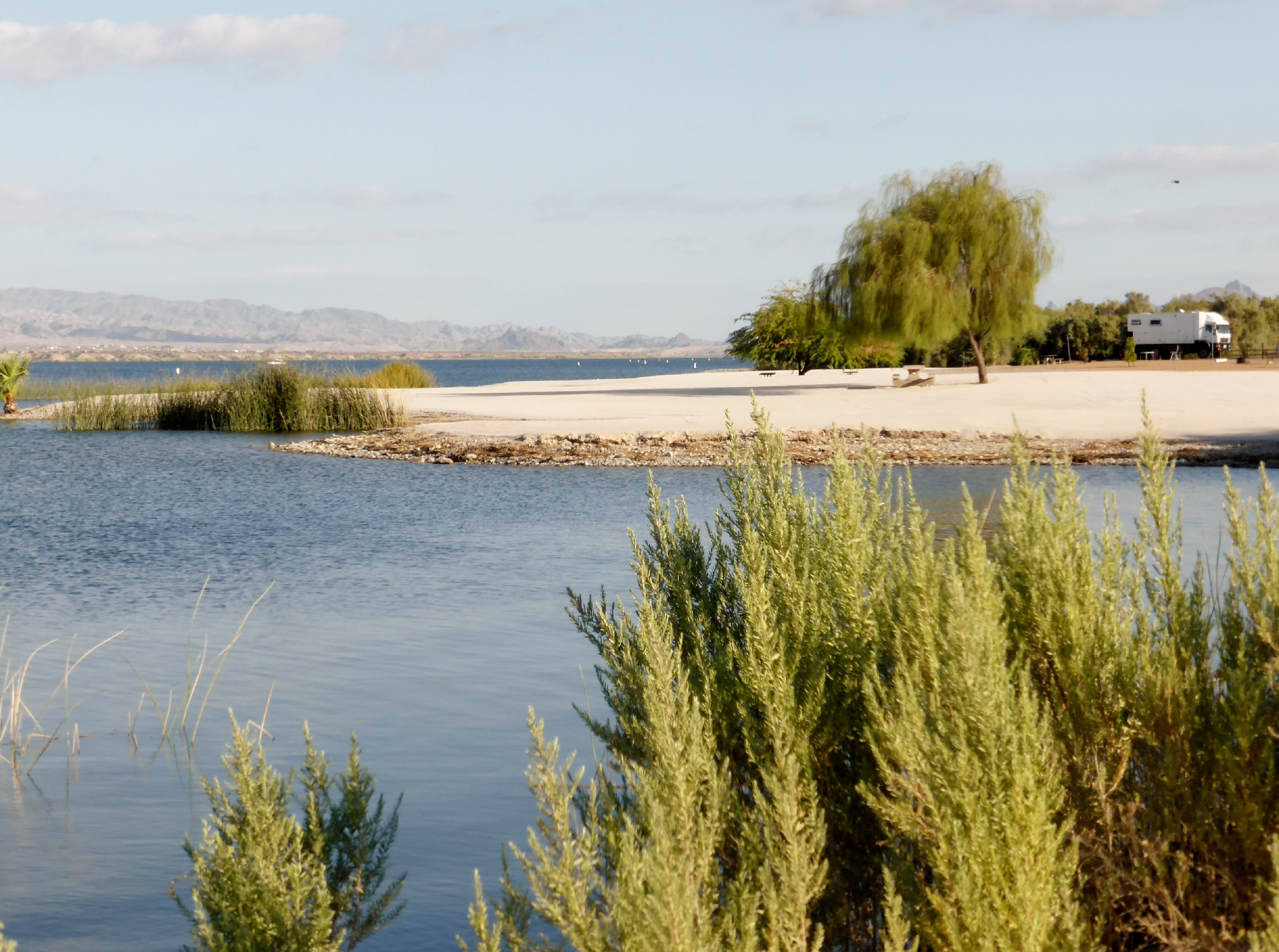Eine Stadt, die erst 1964 entstand, als der Colorado River gestaut wurde. Im State Park finden wir den letzten, freien Platz direkt am See für das verlängerte ‚Labor Day Weekend‘ (Tag der Arbeit). Der Ranger sagt uns, dass wir am heissesten Ort Amerikas, dem sogenannten Hotspot sind! Uf, hätten wir dies gewusst ….?! Schwimmen und schwitzen bei 40 °C. Jet-Schnellboote brausen von morgen früh bis abends spät mit ohrenbetäubendem Lärm über den See.