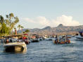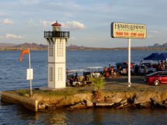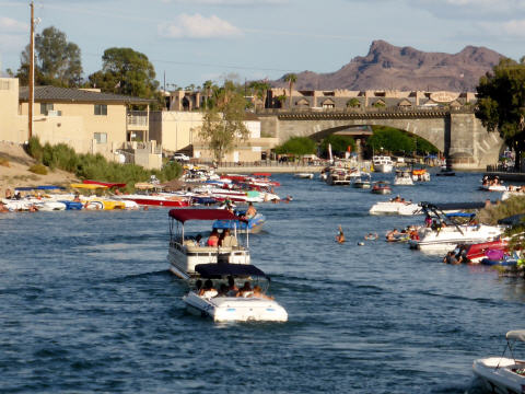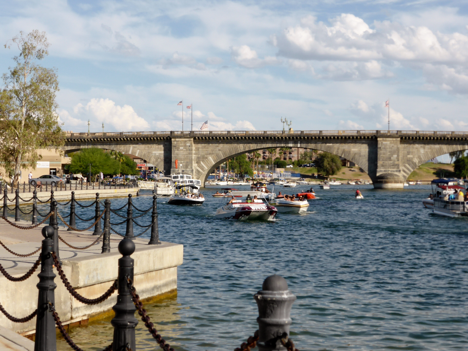 Im Ort steht doch tatsächlich eine Original ‚London Bridge‘. Diese Brücke überspannte einmal die Themse. 1831 musste sie für den Verkehr geschlossen werden, da die Fundamente einsanken. Ein Amerikaner kaufte die gesamte Brücke, nummerierte Stein um Stein, brach sie ab, verschiffte sie nach San Francisco und baute sie in ‚Lake Havasu City‘ wieder auf. Im Hafen liegen die Schnellboote mit ihren 1500 PS, die bis 240 km/h schnell sind. Übers Wochenende tummeln sich hier tausende Amerikaner, fahren ihre Schnellboote aus und feiern feucht fröhliche Partys.