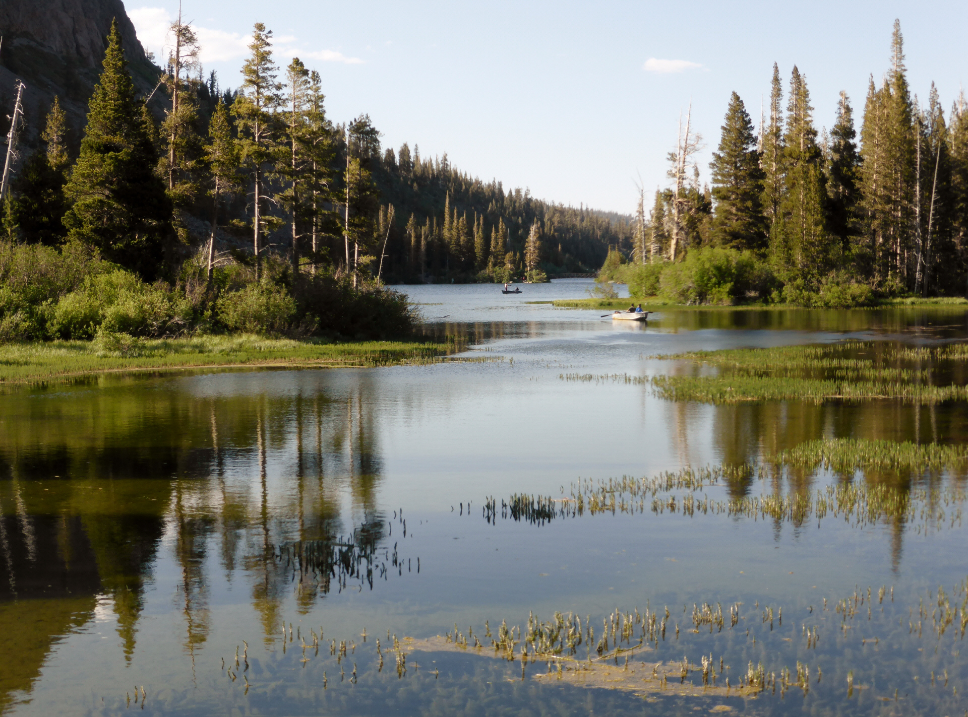 Wir flüchten vor der Hitze und sind angenehm überrascht. ‚Mammoth Lakes‘ – viele kleine Bergseen, Wälder und angenehmes Klima. Finden den letzten freien Platz auf einem der vielen Camping und bleiben drei Tage an den ‚Twin Lakes‘.