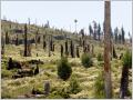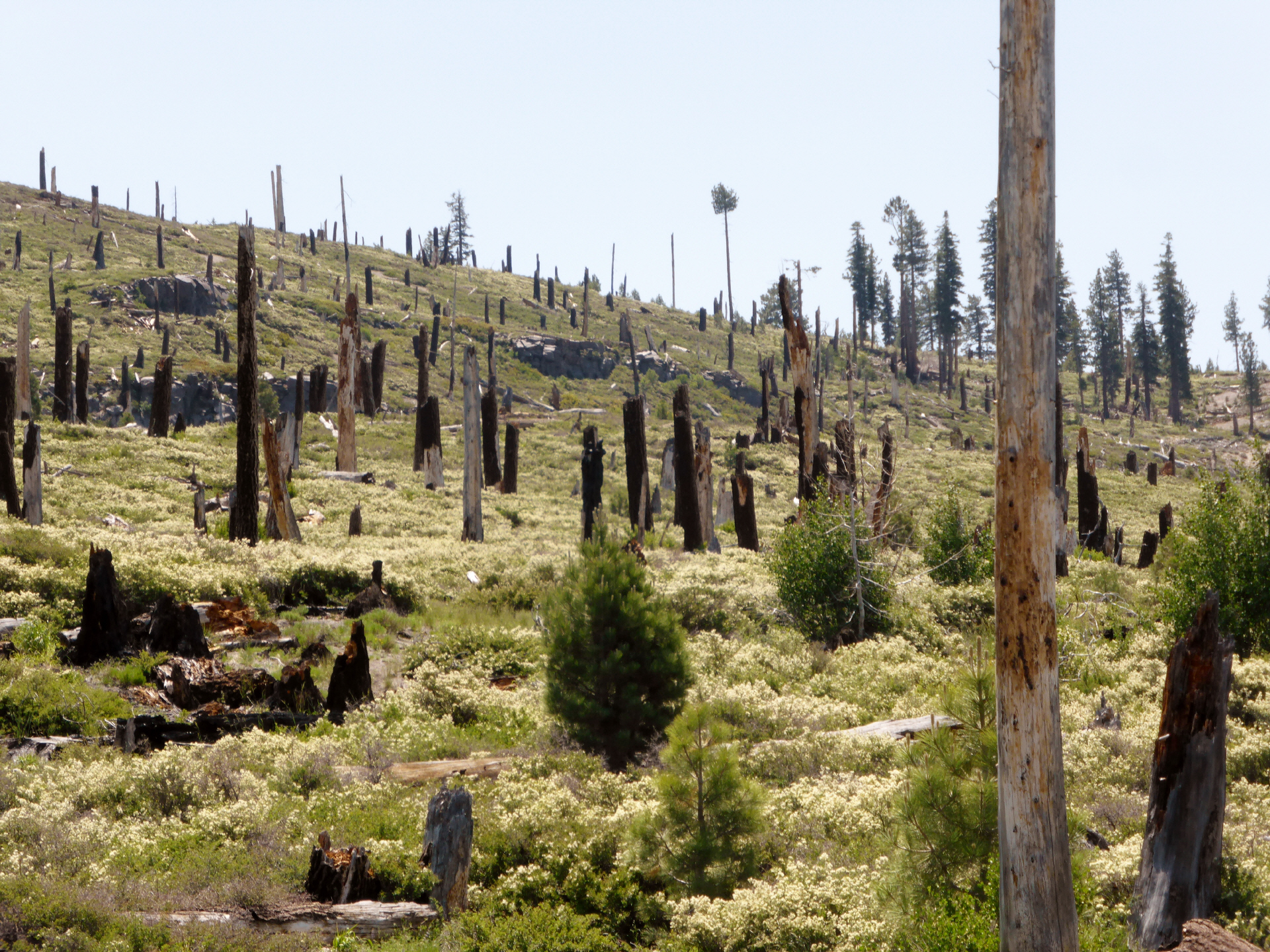 Im 1992 brannte hier ein riesiges Stück Wald (8765 acres/1 acre ist etwa 4200 m2) ab. Der Waldbrand wurde durch Blitzschlag verursacht. Viele der 250 Jahre alten Bäume brannten. Es gibt drei Dinge, die den riesigen, schönen, pfeilgeraden Bäumen zusetzen: Feuer, Sturm (2011 stürmte es hier mit 170 Meilen resp. 250 km/Std.) und einem Käfer, der die Krone der Riesen befällt und sich dann nach unten durchfrisst.