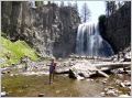 Bei den ‚Rainbow Falls‘ essen wir unseren Lunch: getrocknetes Jerkey (2-mm-dickes Bündnerfleisch, hart und zäh). Kaspar beisst sich dabei den linken, oberen, hinteren Zahn aus – na prima, genau wie in Mexiko Baja California! Er ärgert sich, es tut nicht weh, aber der Zahn stört.