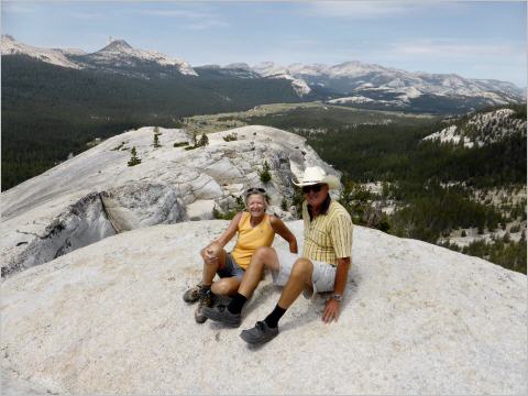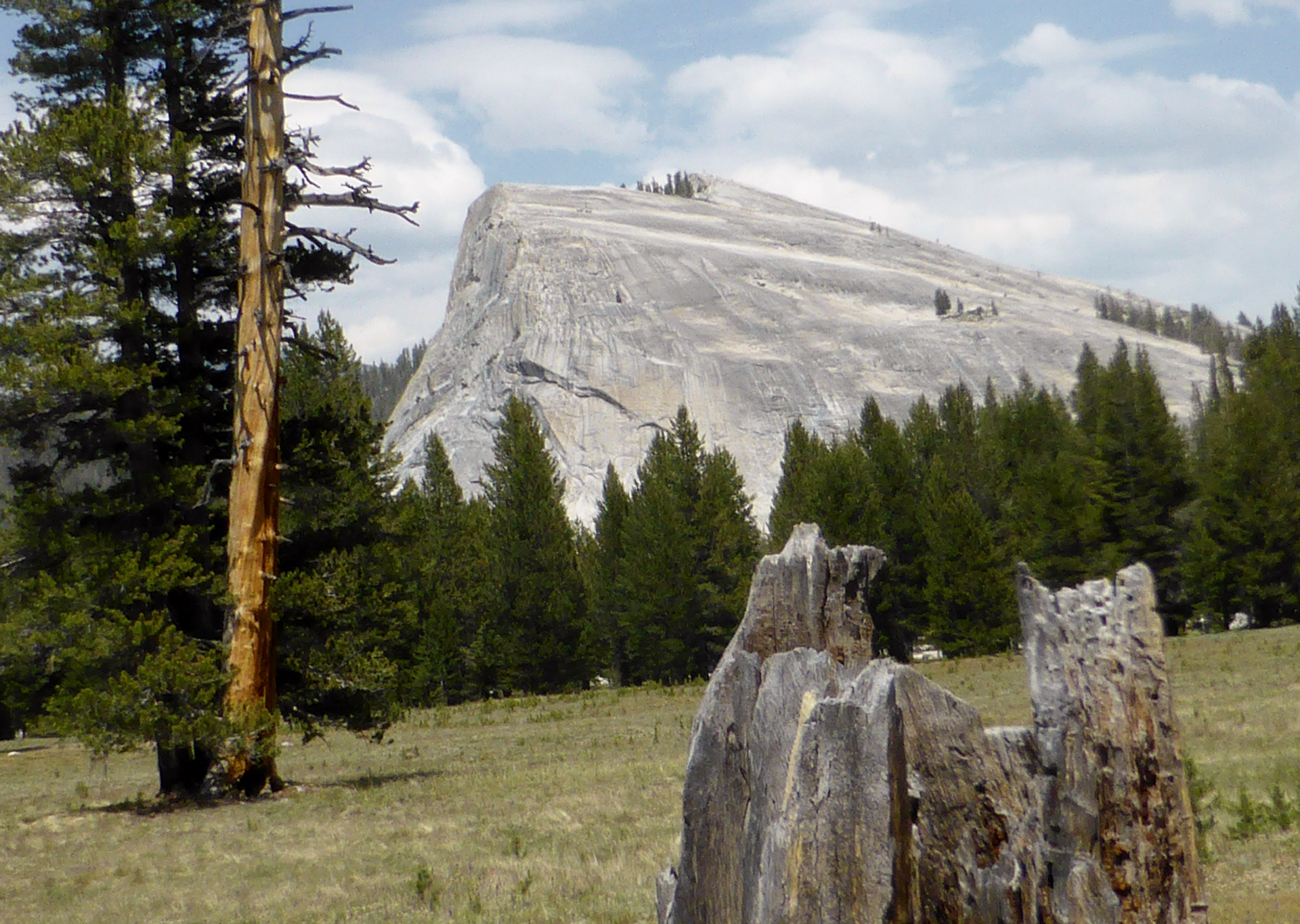 Bigi hat sich in den Kopf gesetzt, den vom Eis blank polierten ‚Lembert Dome‘ zu besteigen. Dieses Mal sind wir schlau und ziehen feste Schuhe an. Es ist ein kurzer, eineinhalb Meilen langer, aber steiler, schöner Wanderweg mit 300 m Höhenunterschied. Oben angekommen hat man eine 360 Grad Rundsicht über einen kleinen Teil des Parks.
