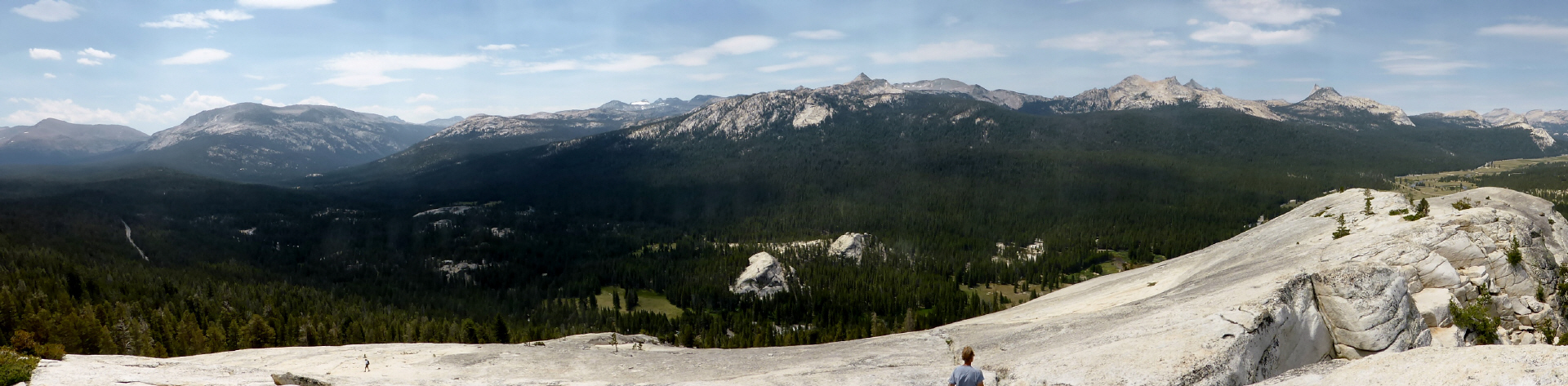 Fahren den langgestreckten ‚Tioga Pass‘ hinauf. Der MAN schwitzt wie immer, die Heizung läuft auf Stufe Maximum und die Fenster sind offen. Er schafft es wieder mit Bravour! Dann leicht hinunter an schönen Wäldern und vielen, kleinen Seen vorbei. Im Visitor Zentrum holen wir die obligaten Informationen.