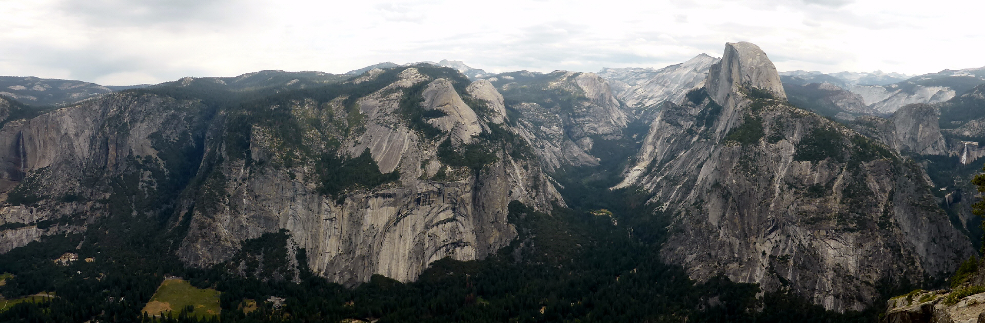 Wir spinnen, sind schon um 05.45 Uhr auf den Beinen und eine Stunde später keuchen wir den ‚Tioga Pass‘ hinauf zum ‚Glacier Point‘, einer Aussichtsterrasse mit weitem Blick über das ‚Yosemite Valley‘ und den bekannten ‚Half Dome‘ (2693 m). Die ersten Regentropfen fallen. Heute keine Wanderung, sondern zurück zum Camping und ausruhen. Bigi bäckt Schoggi-Chips.