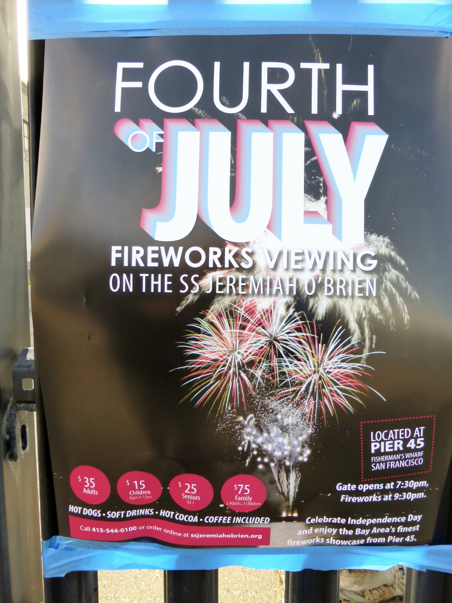 Heute 4. Juli ‚Independenz Day of America‘ (Nationalfeiertag) sind viele Amerikaner und Touristen auf der ‚Fisherman’s Warf‘ unterwegs. Es wird viel eingekauft und in den kleinen Parks wird auf das Feuerwerk. Wir verzichten, da es kalt wird und Nebel aufzieht. Im Nachhinein hören wir, dass man nur den farbigen Himmel sehen konnte. Die Gefängnisinsel ‚Alcatraz‘ ist auf Monate ausgebucht und wir sehen sie nur aus der Ferne.