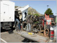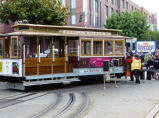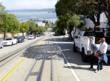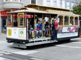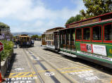 Die ‚Cable Car‘ sind ein beliebtes Transportmittel der vielen Touristen. An den Haltestellen gibt’s lange Warteschlangen, da nur alle 15 Minuten ein Cable Car fährt. Wie der Name sagt, werden die Tramwagen an ein im Boden verlaufendes Drahtseil gehängt und so den Berg hinauf gezogen. Hinab geht es in rasanter Fahrt. Die Touristen stehen teilweise seitlich auf dem Trittbrett und hängen heraus. Nichts von Sicherheitsvorschriften - und dies im äusserst sicherheitsbewussten Amerika. Der Tramchauffeur überfährt eine Haltestation, da er zu spät bemerkt, dass wir aussteigen wollen. Bremsen ist für ihn nicht mehr möglich. An der Endstation wird das Tram auf einer Drehscheibe von Hand gedreht.