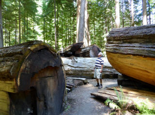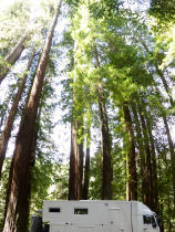 Es gibt zwei Arten: an der Küste den ‚Coast Redwood‘ (bis 112 hoch, Stamm 6,6 m dick, 2000 Jahre alt) und im Landesinneren den ‚Giant Sequoia‘ (bis 94 m hoch, Stamm 12 m dick, 3200 Jahre alt). Eine besondere Attraktion: man kann mit dem Auto durch einen ‚Giant Sequoia‘ fahren – ausser das Fahrzeug ist so gross wie unseres.