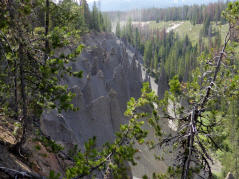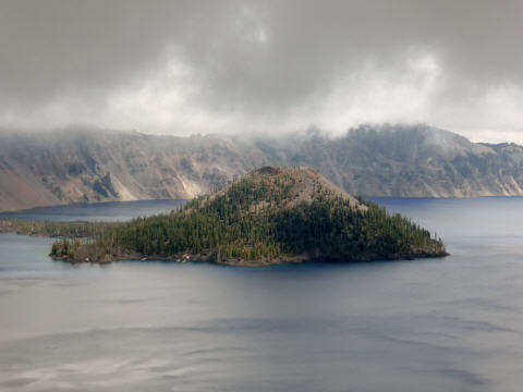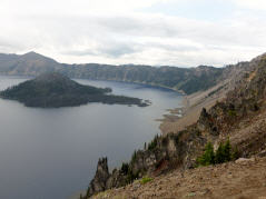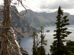 Vor langer Zeit brach der ‚Mazama Mountain‘ durch einen Vulkanausbruch in sich zusammen und bildete den riesigen ‚Crater Lake‘. Der See ist tiefblau, glasklar, Wasserqualität mehr als sauber, momentane Wassertemperatur 12 °C, erwärmt sich im Sommer und gefriert im Winter nicht, 16 km Durchmesser, tiefste Stelle 592 m und somit der tiefste See von Amerika, wurde mit einem ferngesteuerten U-Boot erforscht. Die Strasse führt 26 Meilen rund um den See mit vielen, grosszügig angelegten Aussichtspunkten. Auf dem Kratersee verkehrt ein Touristenboot zur ‚Wizard Island‘, einer Vulkaninsel, die erst vor 7700 Jahren entstand. Wir sind auf 2000 m Höhe, es ist kalt und teilweise neblig. Im Winter reden sie von durchschnittlich 15 m Schnee. Die Bäume sind dann unter dem Schnee begraben. Ein Abstecher führt uns zu den etwas abgelegenen ‚Pinnacles‘ – Säulen aus Lavagestein.