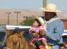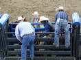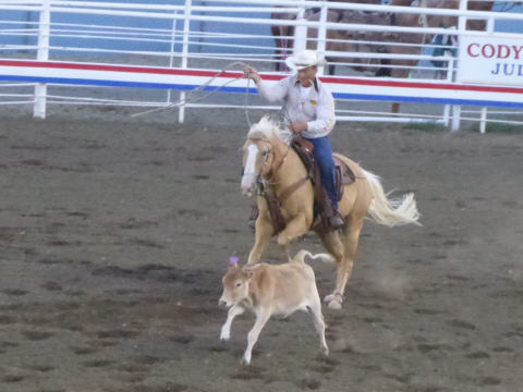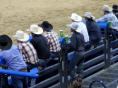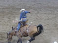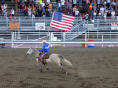 Wir steuern die Tribüne auf der gegenüberliegenden Seite des Stadions an. Hier satteln die Cowboys wilde Pferde und Ochsen. Wir sitzen in der vordersten Reihe und verfolgen interessiert, wie den in den Boxen eingepferchten Pferden das Sattelzeug angelegt wird. Wie immer wird zuerst stehend die Nationalhymne gesungen und der Speaker betet – das ist Amerika! Es gibt Wettkämpfe zwischen den Cowboys. Das Kalb muss rasch möglichst mit dem Lasso eingefangen werden. Der Reiter springt ab, legt das Kalb auf den Boden, fesselt ihm die Beine und die Zeit wird gestoppt. Der Sieger braucht heute 9,7 Sekunden. Ein als Cowboy verkleideter Clown moderiert gekonnt die Show. Cowgirls gehen ebenfalls gut mit dem Lasso um. Ein Wettkampf für Frauen ist rasch möglichst um drei Hindernisse zu reiten. Dazwischen zeigen die Kunstreiterinnen Kunststücke auf dem Rücken der Pferde. Atemberaubend! Die zwei Reiterinnen haben am sechzigsten Thronjubiläum der Queen in England Amerika vertreten. Kinder von zehn Jahren zeigen bereits ihre Cowboykünste beim Bullreiten. Das Rodeo ist sein Geld wert! Nur zufriedene Gesichter steuern dem Ausgang zu!