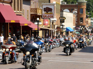 In ‚Sturgis‘ ist das ‚75. Harley Motorcycle Rally‘ in Gang. Der Staat ‚South Dakota‘ hat 800‘000 Einwohner. In dieser Woche werden ein bis eineinhalb Millionen Harley-Fahrer in der Region erwartet - unvorstellbarer Lärm und teilweise kurlige Gestalten. In der schönen Wildwest Stadt ‚Deadwood‘ beobachten wir das Geschehen. Hunderte von Harleys sind parkiert, werden von Bikini-Girls gegen Bezahlung gewaschen und sie fahren im Tross.