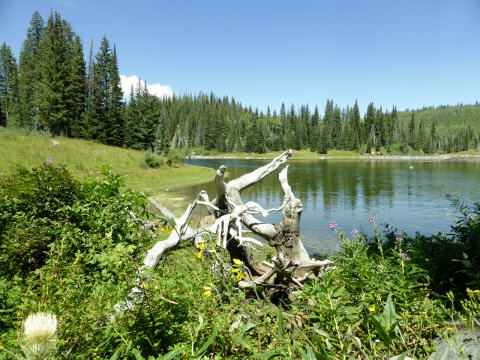Das Hochplateau liegt auf 3000 m Höhe und hat über 300 Bergseen. ‚Lands End‘, eine scharfe Kante mit grandioser Aussicht über das Tal. Viele unbekannte Bergblumen blühen in allen Farben. Campieren für zwei Tage am schönen ‚Jumbo Lake‘. Wollen unsere USA-Reise entschleunigen. Arbeiten an der Homepage, aber oh weh, das Computerprogramm spinnt. Brauchen nächste Woche Fernwartung aus Solothurn. Die ‚5-Seen-Wanderung‘ führt uns zum ‚Lost Lake‘ hinauf. Bigi nimmt ein einsames, herrlich kühles Bad. Heute Freitag ist in der schönen Lodge am ‚Mesa Lake‘ live Musik. Today’s Special: wild gefangener Salm aus Alaska. Ein schöner Abend!