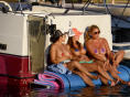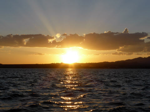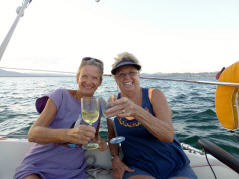 Wir werden von unseren Nachbarn Richard und Janet zu einem Segelturn bei Sonnenuntergang eingeladen. Die Leute winken uns zu, denn ein Segelboot ist hier die reinste Sensation!