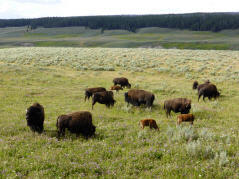 Der ‚Grand Canyon of Yellowstone‘ ist mit den zwei Wasserfälle wunderschön. Im Osten des Parks stösst man immer wieder auf eine Bisonherde.