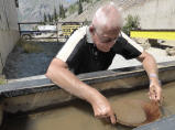 Fahren den ‚Million Dollar Highway‘ über einen Pass zur Minenstadt ‚Silverton‘. Der Name der Strasse kommt davon, da man nicht weiss, ob hier im Teer Gold mit eingebaut wurde, die Strasse im 19. Jahrhundert eine Million Dollar gekostet hat oder ein Mann erklärte, dass er auch für eine Million Dollar nicht mehr über diesen Pass gehen würde. Der Fluss ist goldgelb. Vor zwei Wochen ist ein Stollen einer alten Mine gebrochen und alles verseuchte, gelbe Wasser wälzte sich durch das Tal. Gewässerverschmutzung ‚par excellent‘ - keine Fische mehr! Besuchen die ‚old hundred Gold Mine‘. Von der Entdeckung 1872 bis 1971 wurde hier Gold abgebaut. 1872 starteten die ersten Bergleute auf ca. 3500 m. ü. M. – das waren noch verrückte Einwanderer! Das Gestein wurde mit Hammer und Meissel und anschliessend mit Dynamit herausgebrochen. Ein Bergmann erhielt 3 $ pro Stunde, davon musst er einen Dollar für Logis und Essen abgeben – ein normaler Arbeiter verdiente lediglich 1 $ pro Stunde! Die Lebenserwartung im Bergbau war 41 Jahre. Nach der Minentour versuchen wir unser Glück im Gold waschen. Unsere Ausbeute nach einer halben Stunde sind winzige Silber- und Kupferkügelchen (die vermutlich jeden Tag neu in den Trog geworfen werden). Wir Zwei würden hier nicht reich!