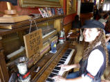 Wir kommen sicher an der Endstation ‚Silverton‘ an. Bummeln durch die Strassen und belagern die Souvenirläden. Dann ins altehrwürdige Restaurant ‚Grumpy’s‘ an der Main Street. Bestellen uns kurz vor Mittag an der Bar einen Whisky und die weltbekannte französische Zwiebelsuppe – Kaspar schwebt im siebten Himmel! Auf dem Piano spielt ein Cowgirl alt bekannte Country Songs. Für die Rückfahrt sitzen wir im offenen Panoramawagen. Zurück in ‚Durango‘ - mit lediglich 10 Minuten Verspätung – sind wir total schmutzig vom Kohlestaub!