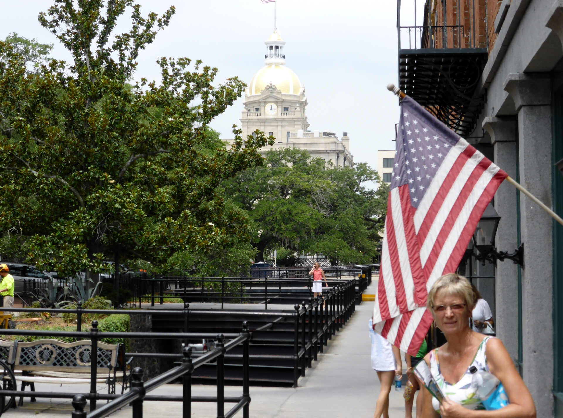 ‚Savannah‘ ist eine sehr grüne Stadt mit alten Häusern und Kopfsteinplaster. 24 ‚Squares‘ – quadratische Plätze mit hohen, schattenspenden Eichen, Parkbänken und schönen Brunnen An den Bäumen hängt viel Irish Moos. Überall stehen die uralten, einzelnen Parkuhren, die mit Quarters gefüttert werden müssen. ‚Savannah‘ ist noch einigermassen intakt, da nach dem Bürgerkrieg kein Geld für Renovation oder Abbruch vorhanden war. Unser MAN steht für drei Nächte auf dem grossen Parkplatz beim Visitorszentrum. Der Gratis-Bus bringt uns zur ‚Riverfront‘. Es ist wieder einmal sehr heiss, zu heiss für Stadtbesichtigung. Bummeln entlang der ‚Riverfront‘ und fahren mit dem kleinen Schiff über den Meeresarm. Ein riesiger, chinesischer Frachter bringt vermutlich viel Billigware. Überall kann degustiert werden. Viel Caramel mit Pecannuss, Fudge (eine Art Schokolade) und hausgemachte, weiche Frucht- Bonbons. Ein heftiges Gewitter überrascht uns. Aus den Abflussrohren spritzt viel Wasser übers Trottoir. Schauen uns drei alte Häuser an. In einem wurde Julietta Gordon Low (Übername Daisy) geboren. Sie ist die Gründerin der amerikanischen Pfadfinderinnen. Bei ihrem Tod im Jahre 1927 waren bereits 3,3 Millionen Pfadfinderinnen eingeschrieben. Besichtigen noch die ‚St. John the Baptist‘ Kathedrale. Ganz schön und eindrücklich. Nicht so dunkel wie sonst. Statt der üblichen, dicken Säulen alles nur dünne Stahlsäulen, welche ein Stahlhändler der Kirche gespendet hat. Hier wurde der Oscar gekrönte Film ‚Forest Gump‘ gedreht. Er sitzt auf einer Parkbank und erzählt seine Geschichte. Dabei vergisst er, dass ihn seine Freundin gerufen hat. Sie wollte ihm sagen, dass er einen Sohn hat.