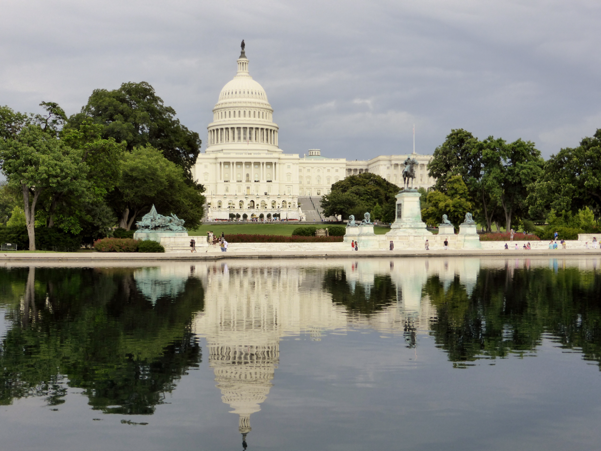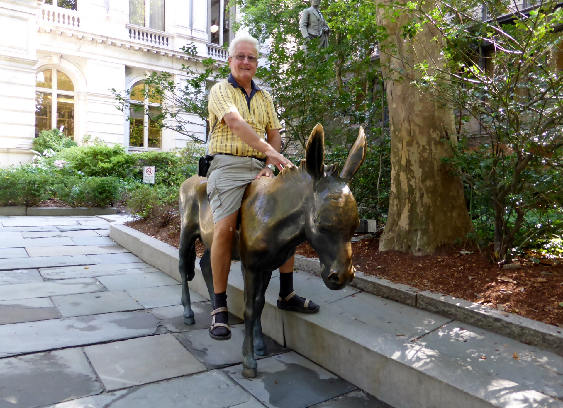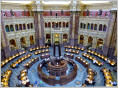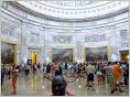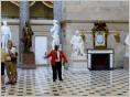 Das ‚Capitol‘ kann nur unter strengsten Sicherheitsbestimmungen besucht werden, nicht einmal eine Flasche Wasser ist erlaubt! Ein Schwarzer führt uns durch die Gänge. Überall stehen grosse Statuen bekannter Amerikaner. Im alten Repräsentantensaal demonstriert uns der Guide die gute Akustik. Sogar Flüsterparolen der Gegenpartei konnten gehört werden! Mit einem Spezialeintritt können wir nach nochmaligen diversen Sicherheitskontrollen auf die Zuschauertribüne des Senats und Repräsentantenhaus. Im riesigen Saal ist ein Politiker am Rednerpult und schwatzt vor leeren Rängen. Gerade mal Präsident, Sekretär und Protokollführer – mit umhängendem Bauchschreibcomputer im Turnus von 15 Minuten - sind anwesend. Später wissen wir ‚warum‘. Die nichtanwesenden Politiker können alles in ihrem eigenen Büro auf dem Bildschirm mit verfolgen. Sie kommen nur für Abstimmungen hierhin. Nebenan ist die riesige Jefferson Bibliothek mit dem imposanten, runden Lesesaal.